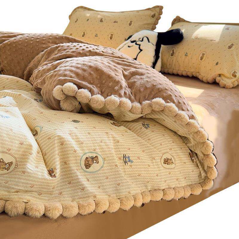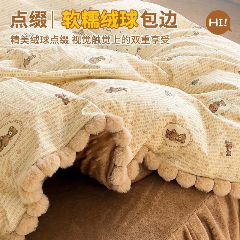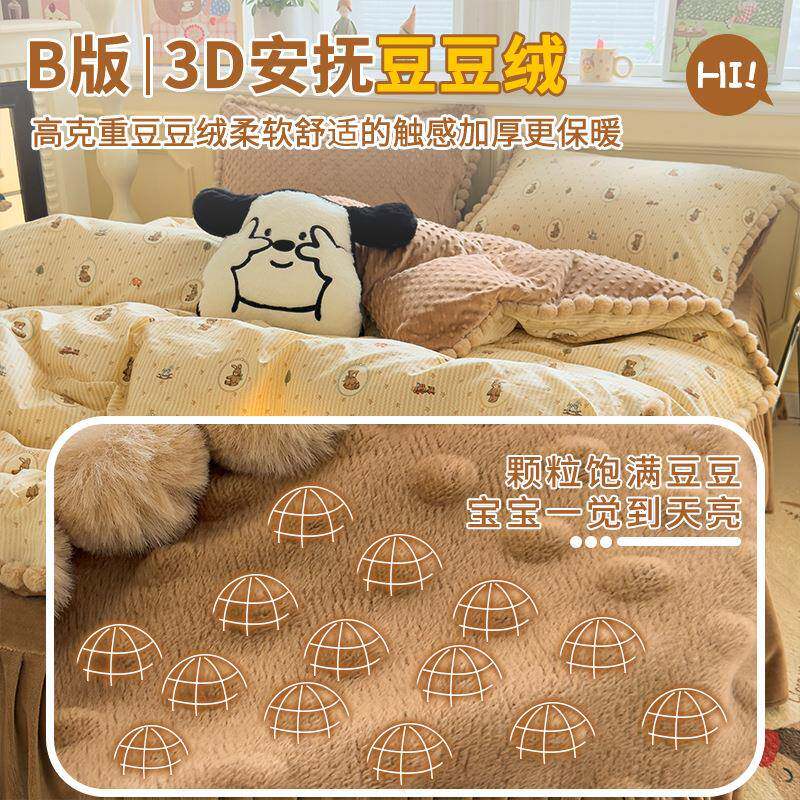 ab面全棉豆豆绒床裙款床上四件套冬季加厚一面棉一面绒被套罩床品