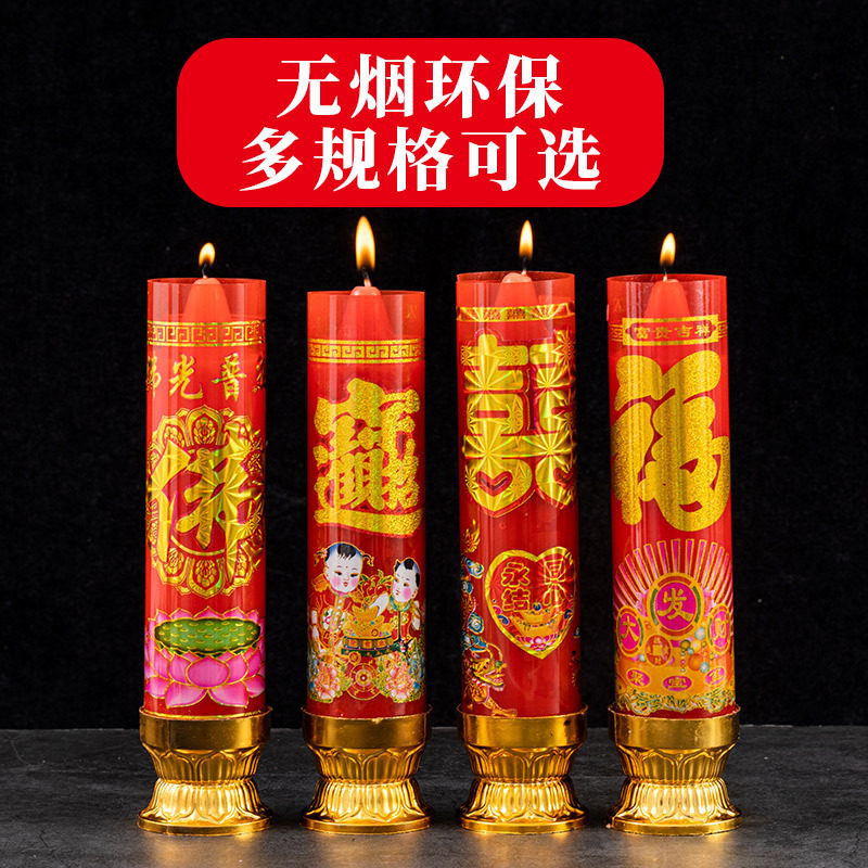蜡烛家用无烟无味装饰喜烛红色供佛特大号酥油环保植物氛围照明