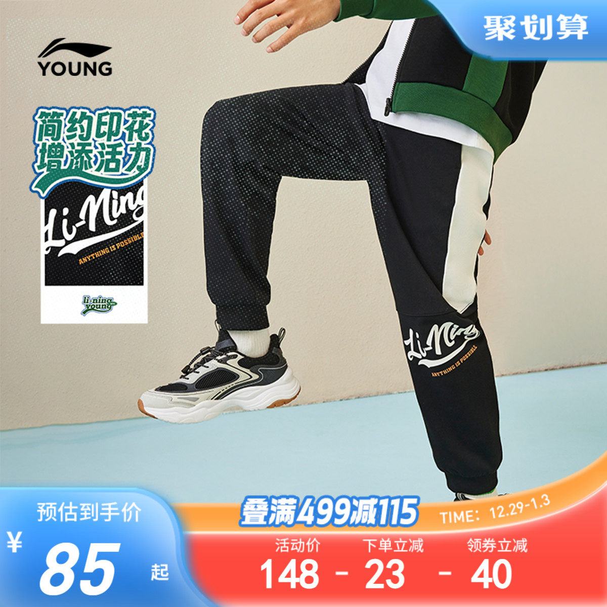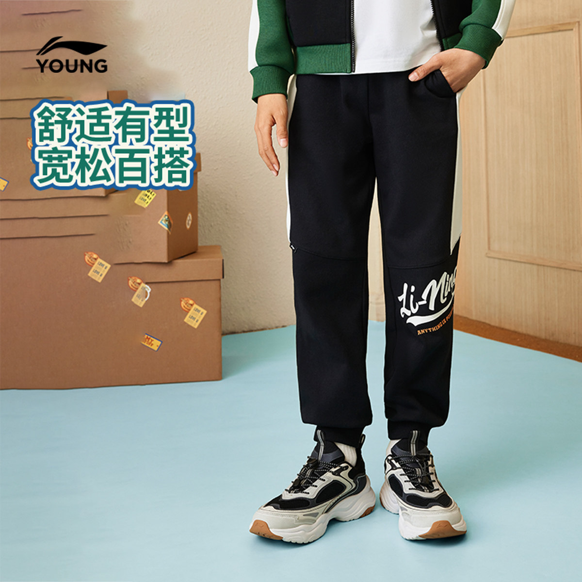 李宁儿童针织束脚卫裤2025新款秋冬款男童装中大童女童青少年裤子