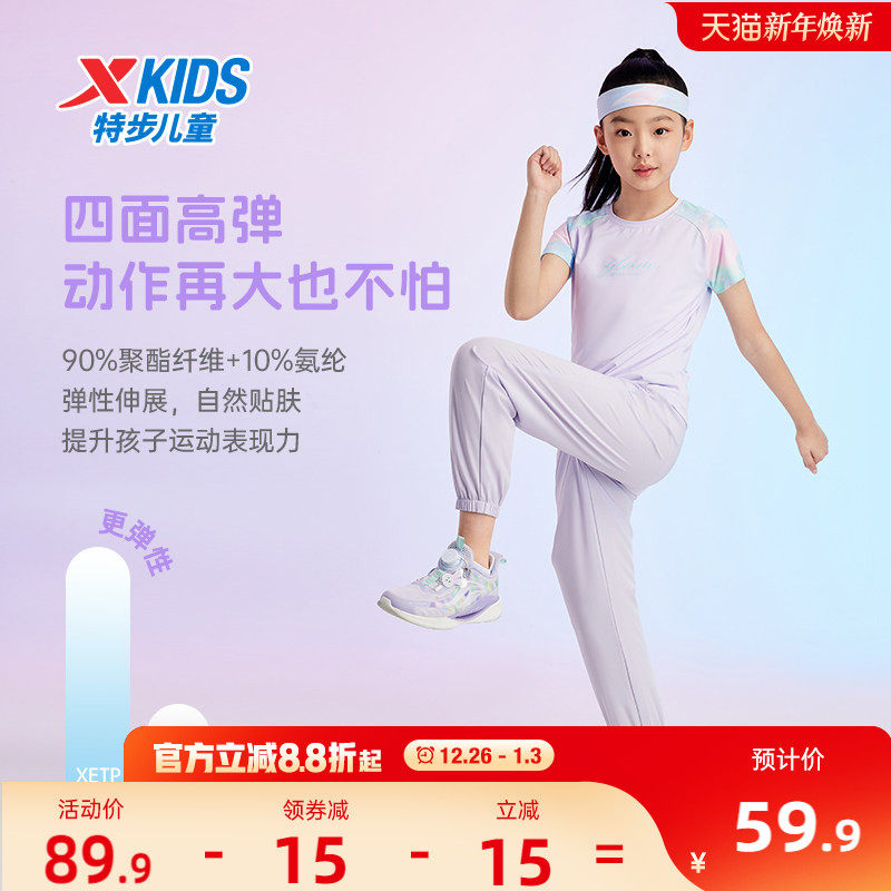 特步童装女童速干裤运动裤子2025夏季新款儿童薄款长裤防蚊裤夏装