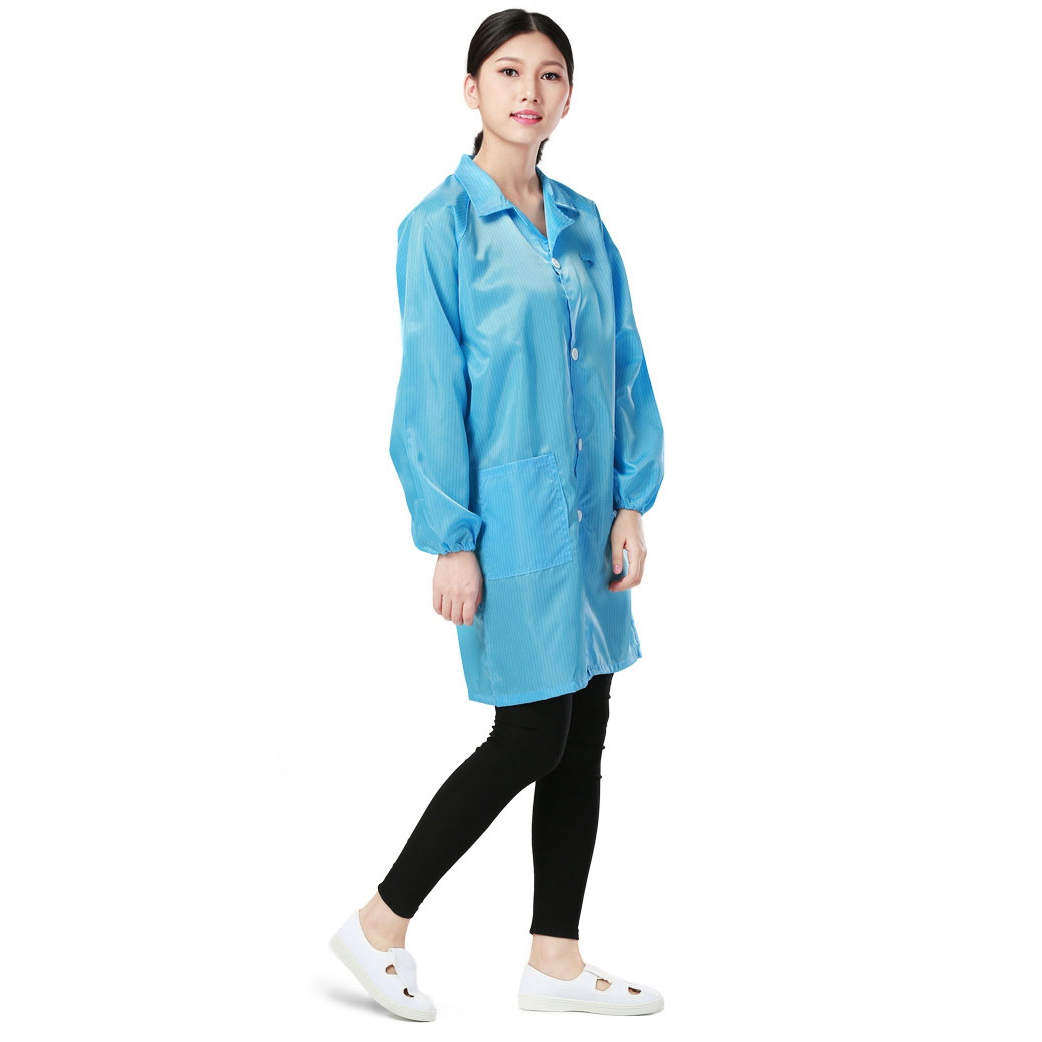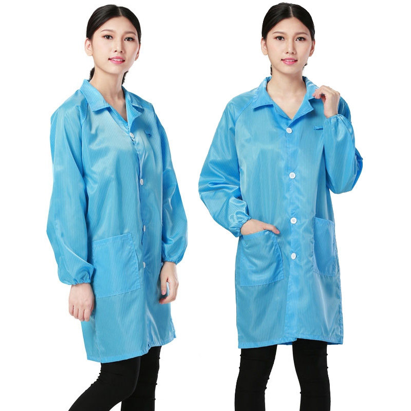 实验室防静电工作服 长款无尘大褂电子厂蓝白色防尘衣男女食品厂防护服车间静电衣防静电洁净服透气工作服