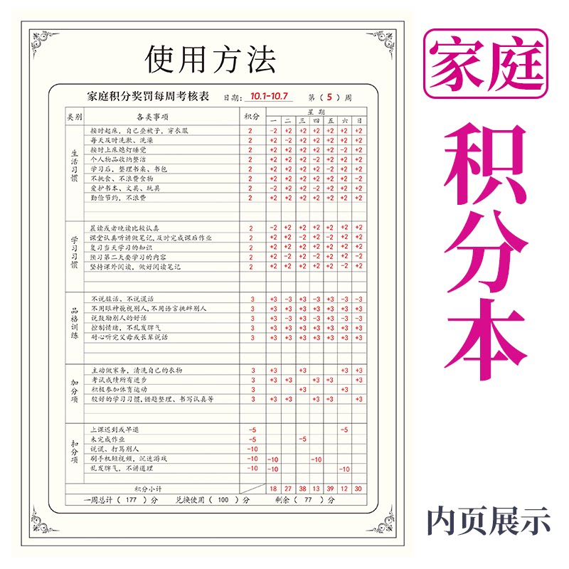 家庭积分本小学生家庭自律生活习惯积分好习惯养成家长打卡记录本