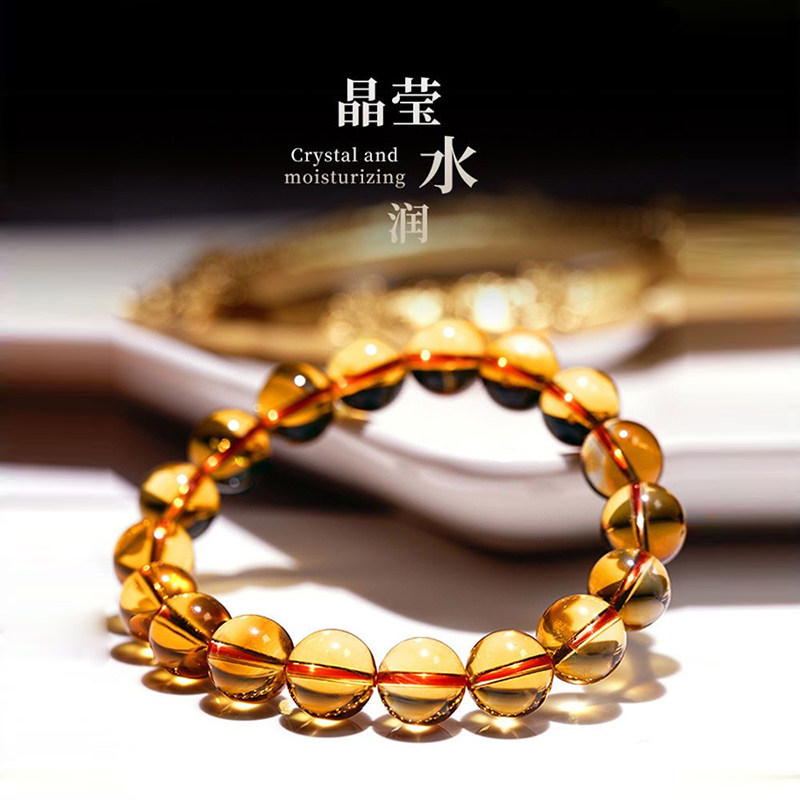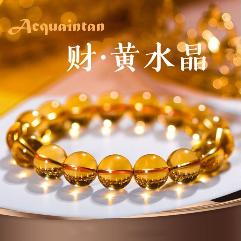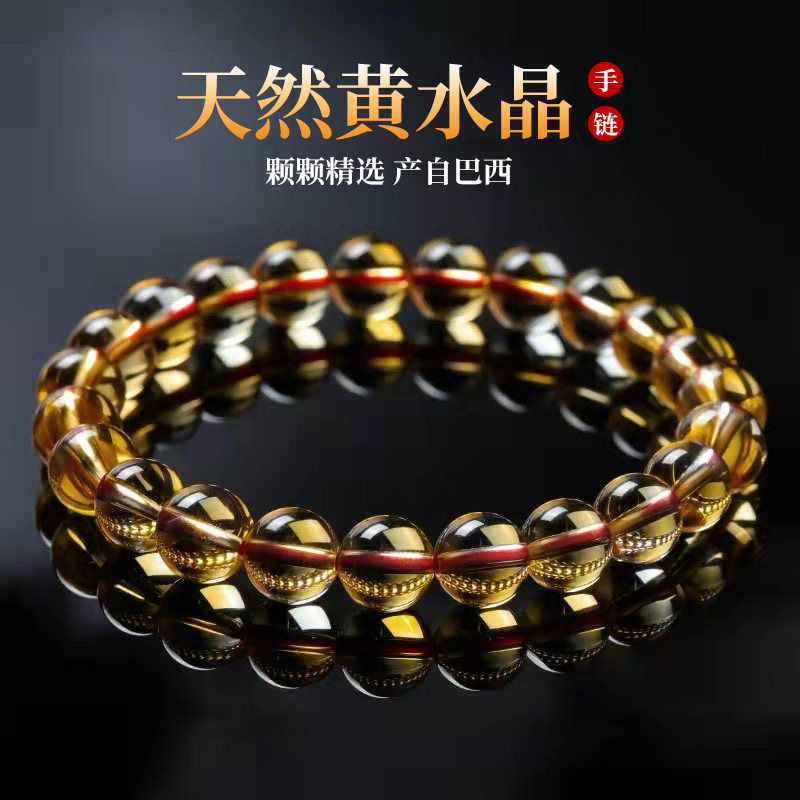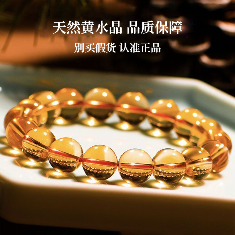 仿黄水晶手链女黄色水晶珠子正品散珠男士手串情侣水晶手饰
