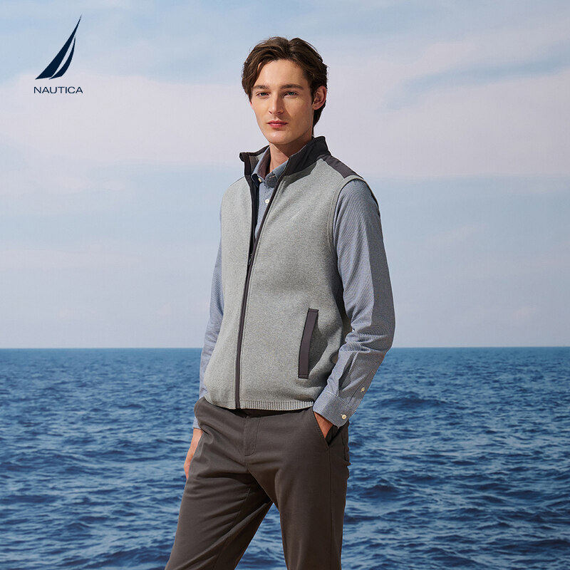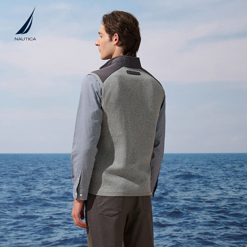 【全棉纱线】NAUTICA/诺帝卡男装25秋季时尚拼接毛衣马甲SO5301