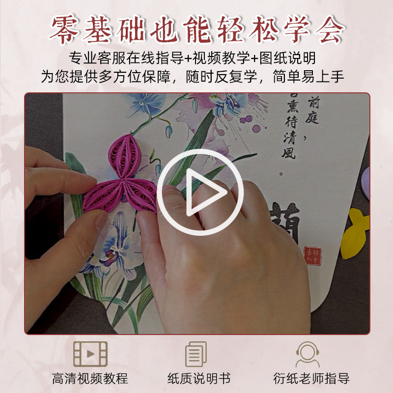 三八女神节手工diy衍纸团扇梅兰竹菊亲子四君子诗词扇子团建活动