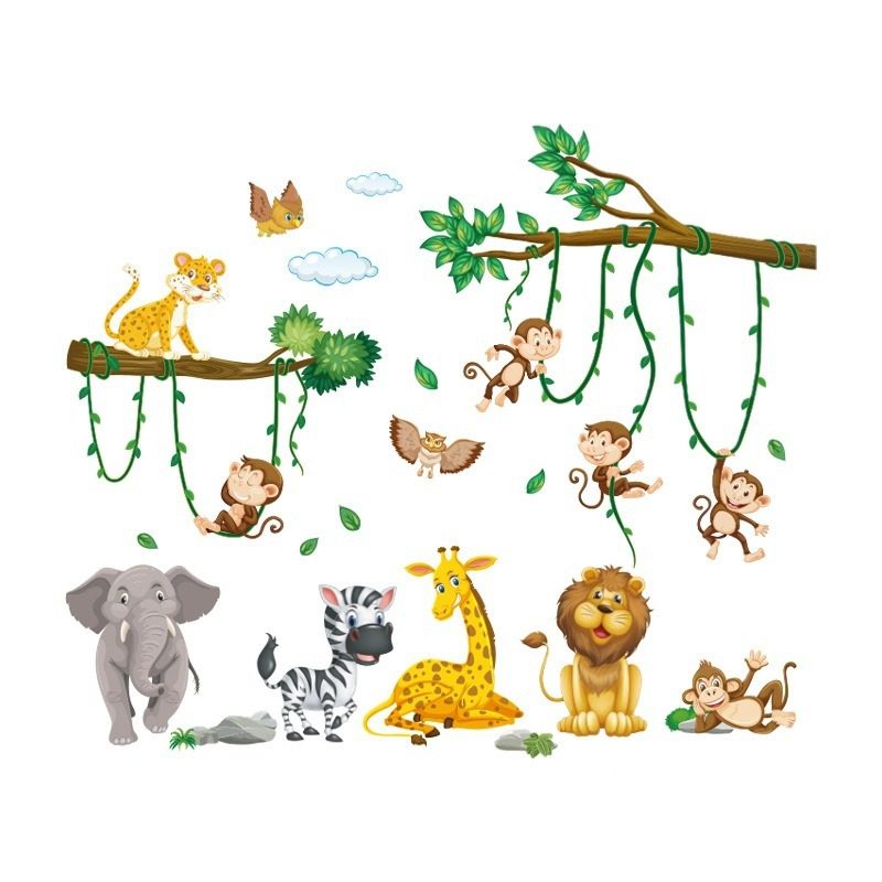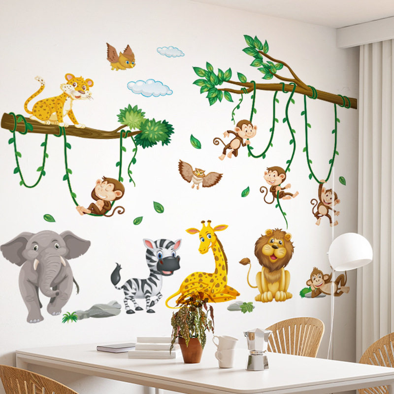 动物聚会卡通动物窗贴早教儿童房墙壁贴画卧室客厅装饰无痕墙贴