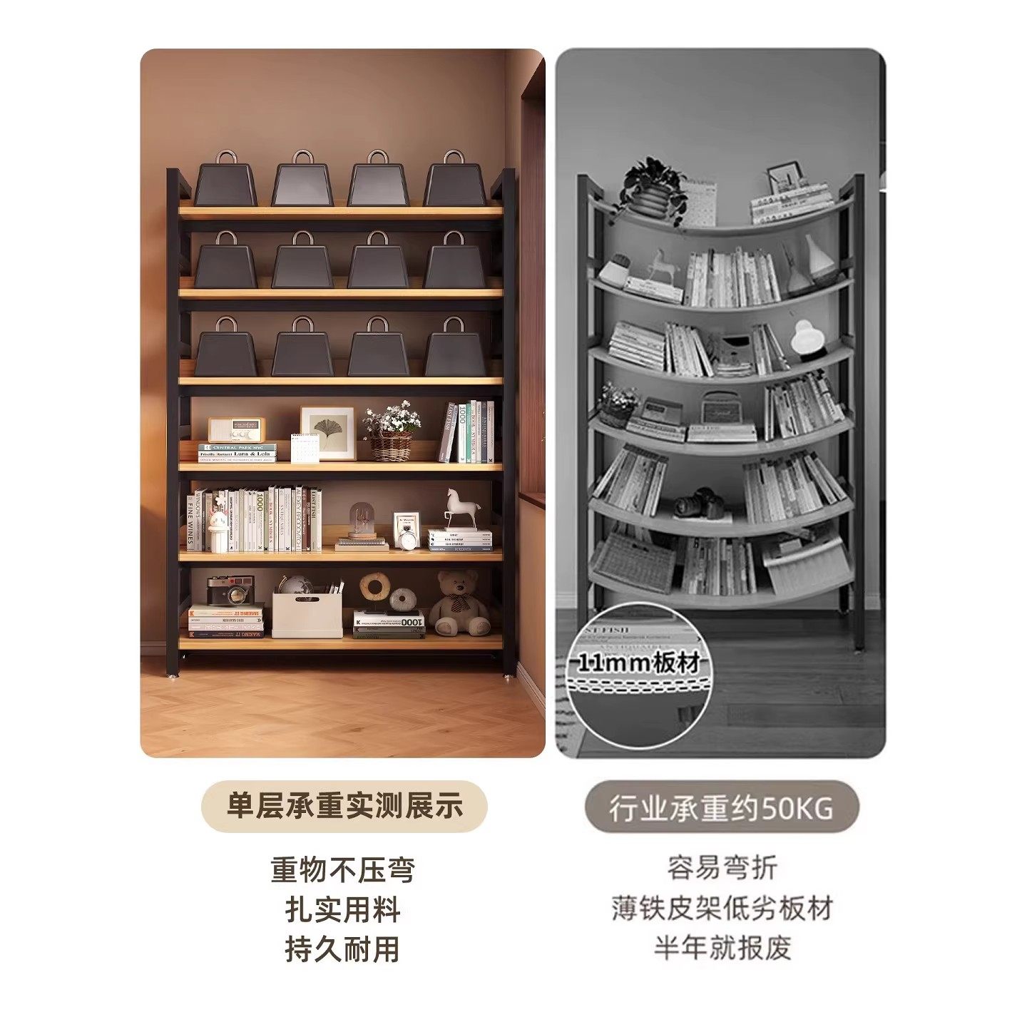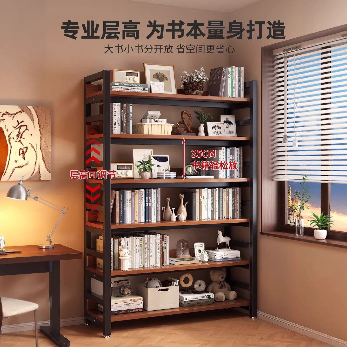 书架置物架落地储物架简约客厅钢木多层货架铁艺置物架收纳书柜