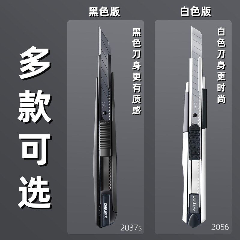得力2037S办公用美工刀锌合金小号金属刀片多功能申缩栽纸刀璧纸用具削笔刀30度学生手工刀手帐切割刀削眉笔