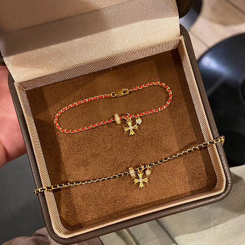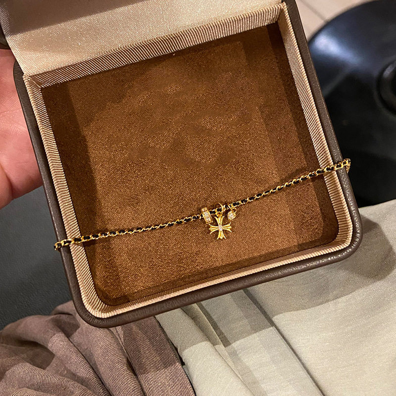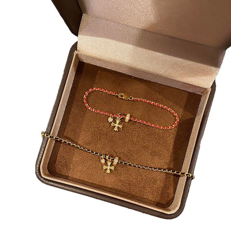 中古点钻十字金刚杵跑环编织手链女小众设计时尚轻奢高级感手饰品