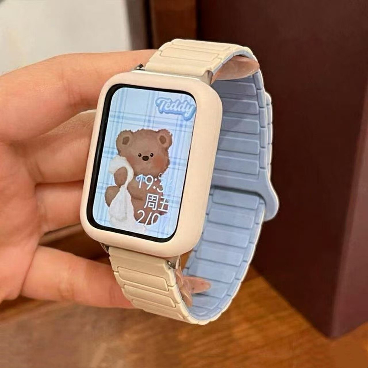 适用小米手环9pro手表铠甲硅胶表带8pro八九代替换腕带磁吸回环红米watch6/5/4表带拼色男女款百搭新款高级冬
