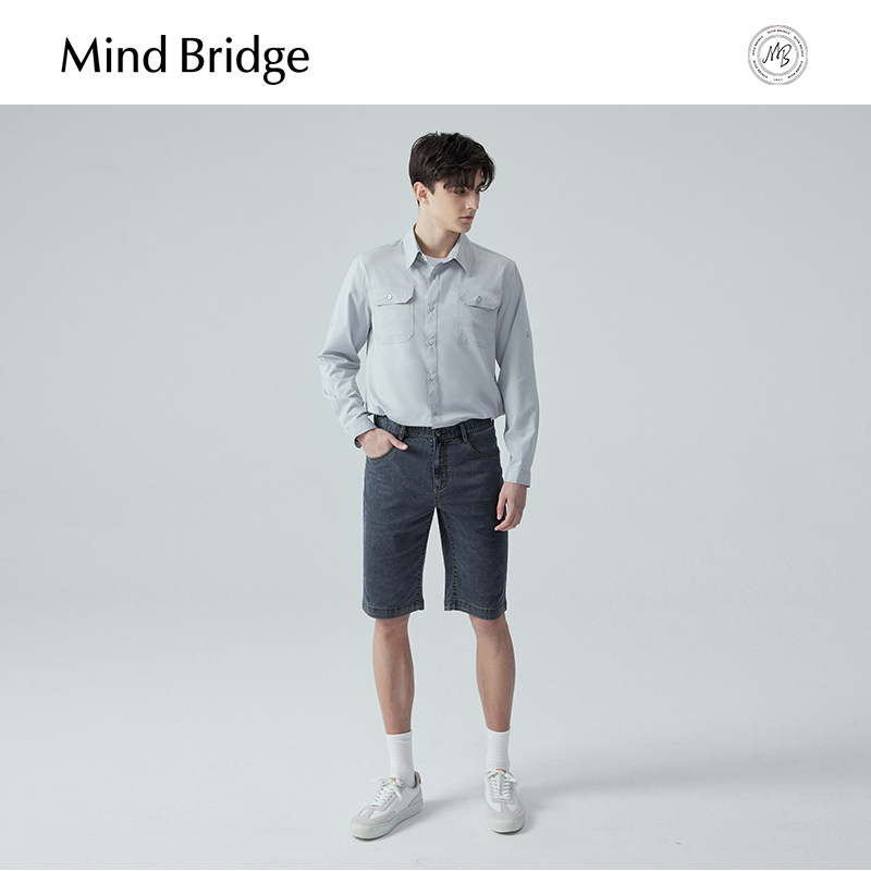 MB MindBridge2025年秋季男士长袖帅气工装衬衫秋季休闲衬衣上衣