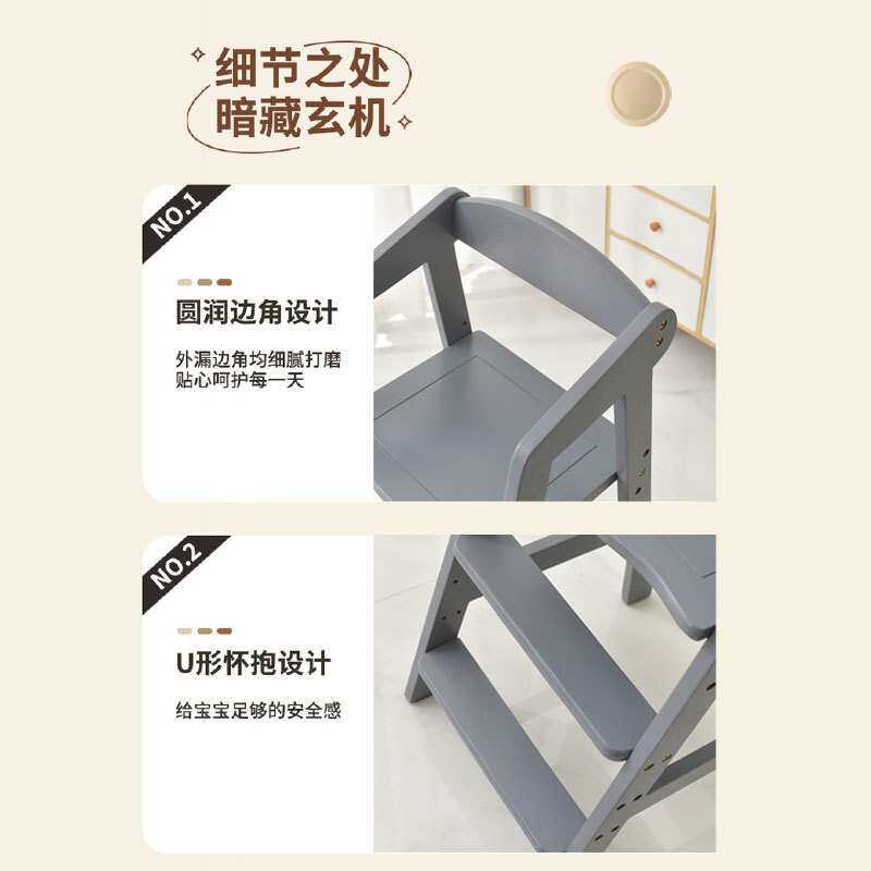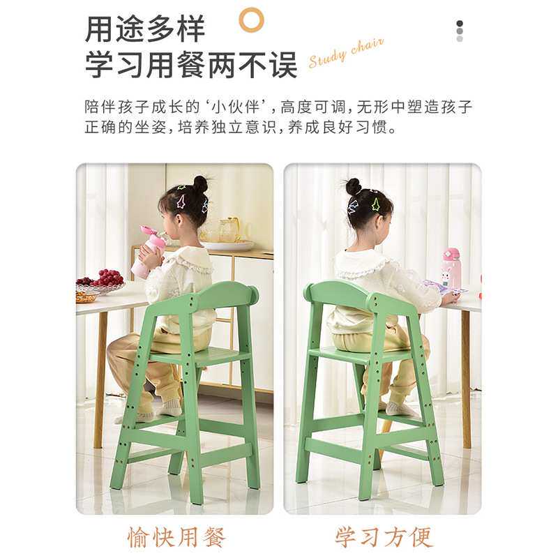 2024新款儿童餐椅宝宝吃饭座椅家用实木餐桌椅可升降高脚凳成长椅