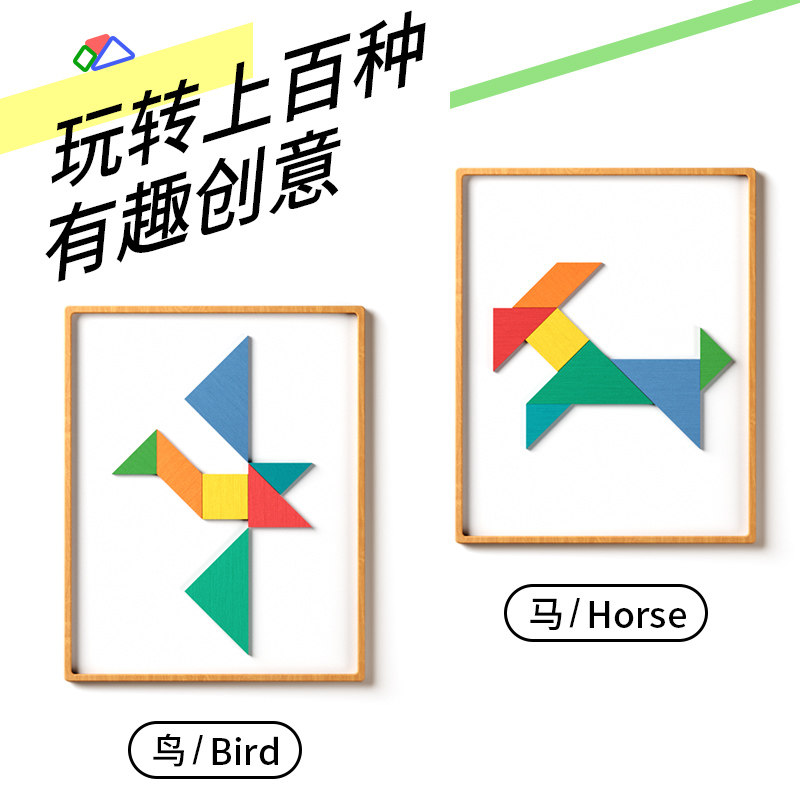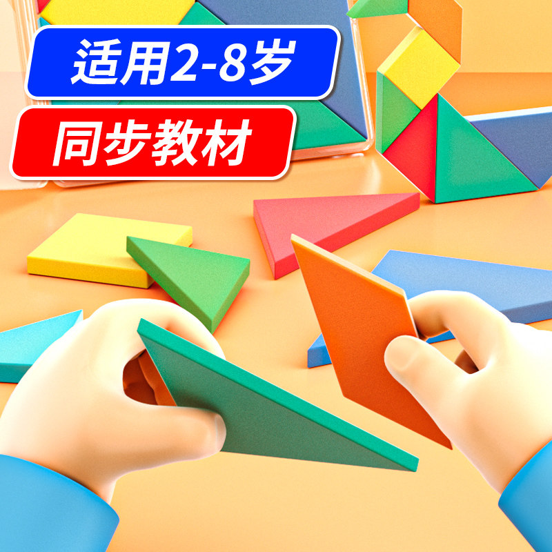 木质七巧板一年级上册小学生教学具智力拼图儿童数学专用教具思维