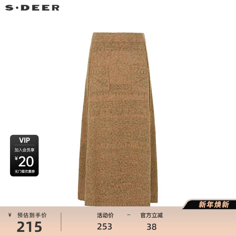 sdeer圣迪奥女装慵懒文艺针织套装撞色A字伞裙S234Z1132
