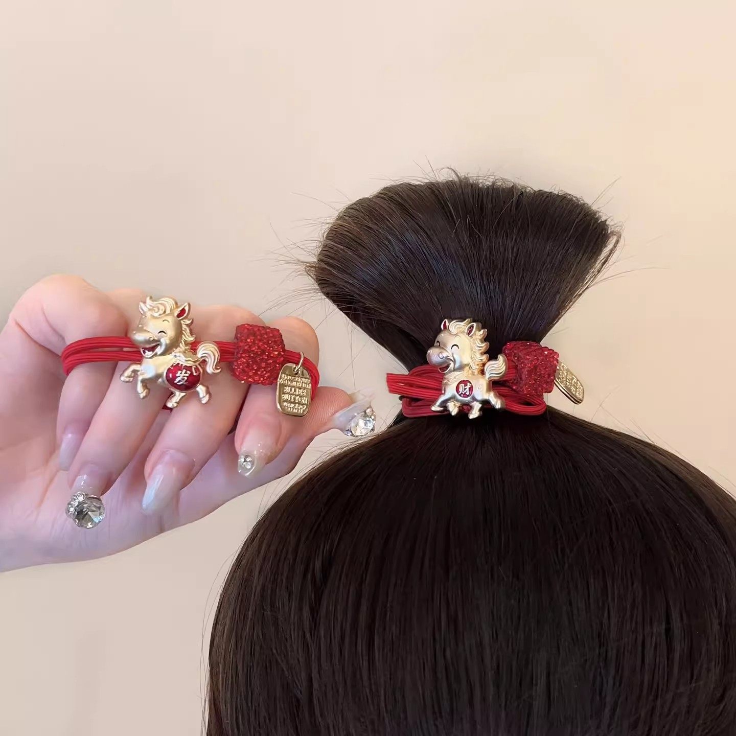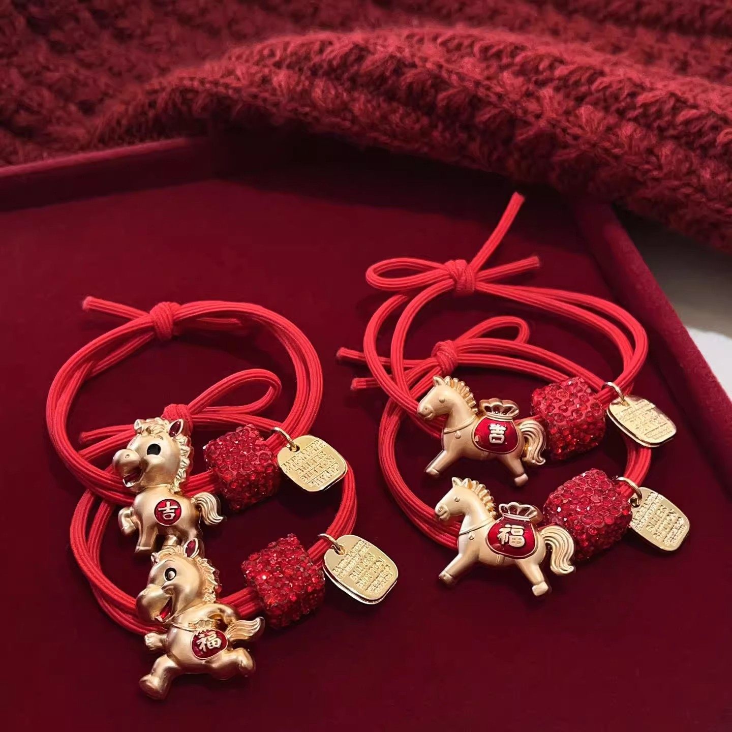 2026马年新年发绳发圈女红色本命年头绳头饰孩儿童皮筋扎丸子头饰