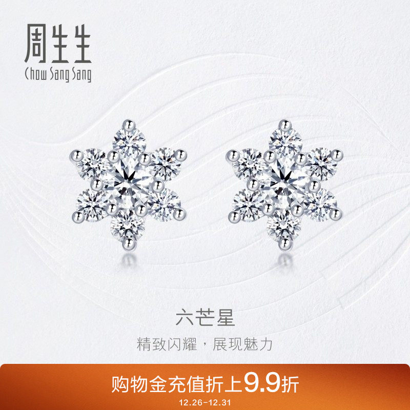 周生生钻之颂永恒之颂18K白色黄金花钻石耳钉钻饰耳饰19974E
