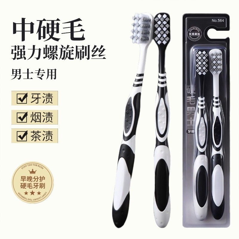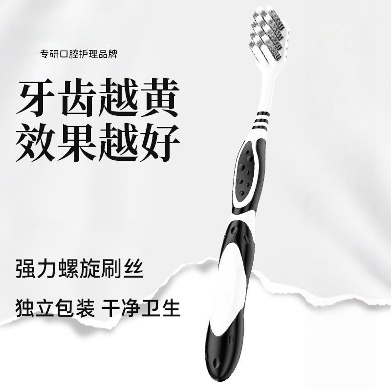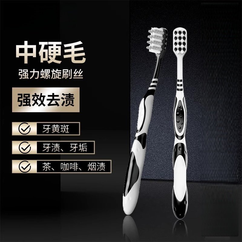 中硬毛牙刷黑科技去烟渍男士去牙垢成人家庭装便携旅行牙刷
