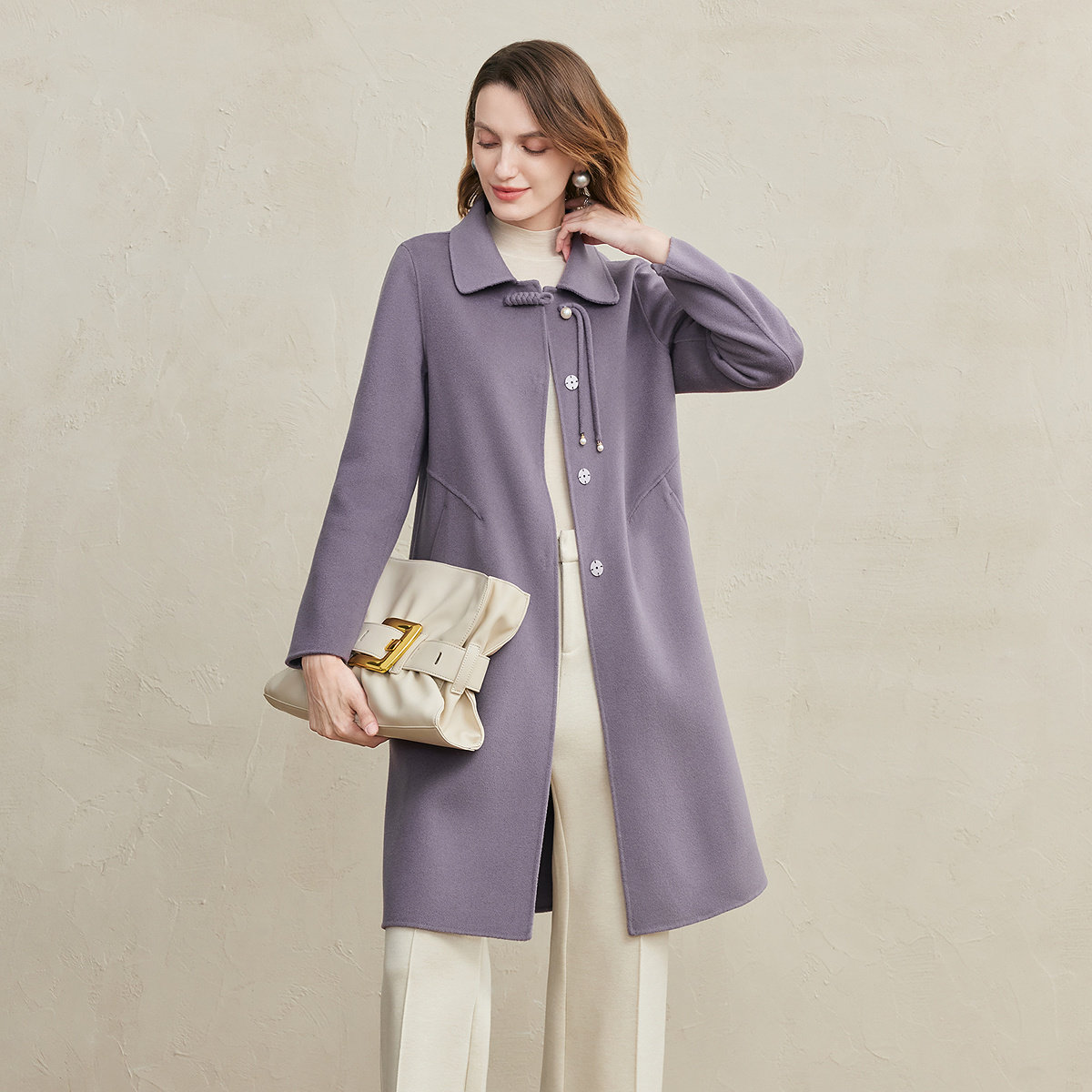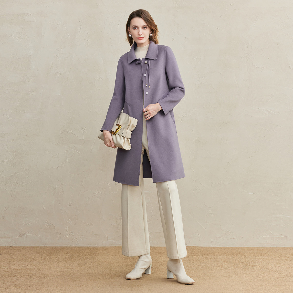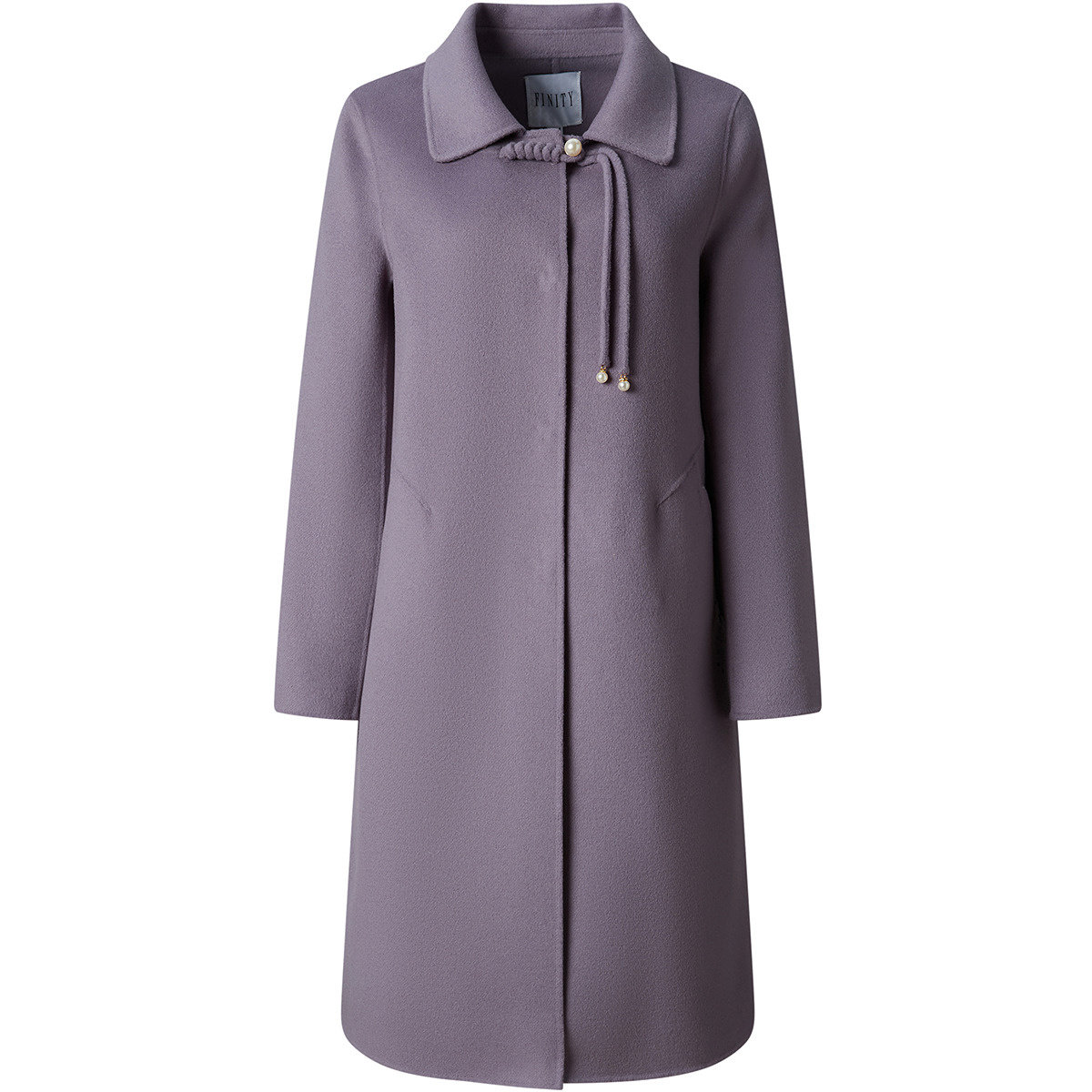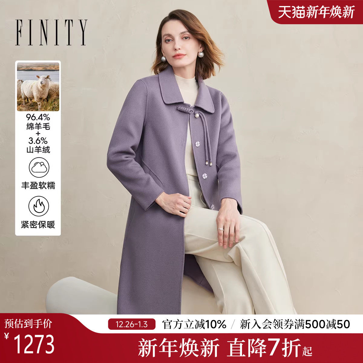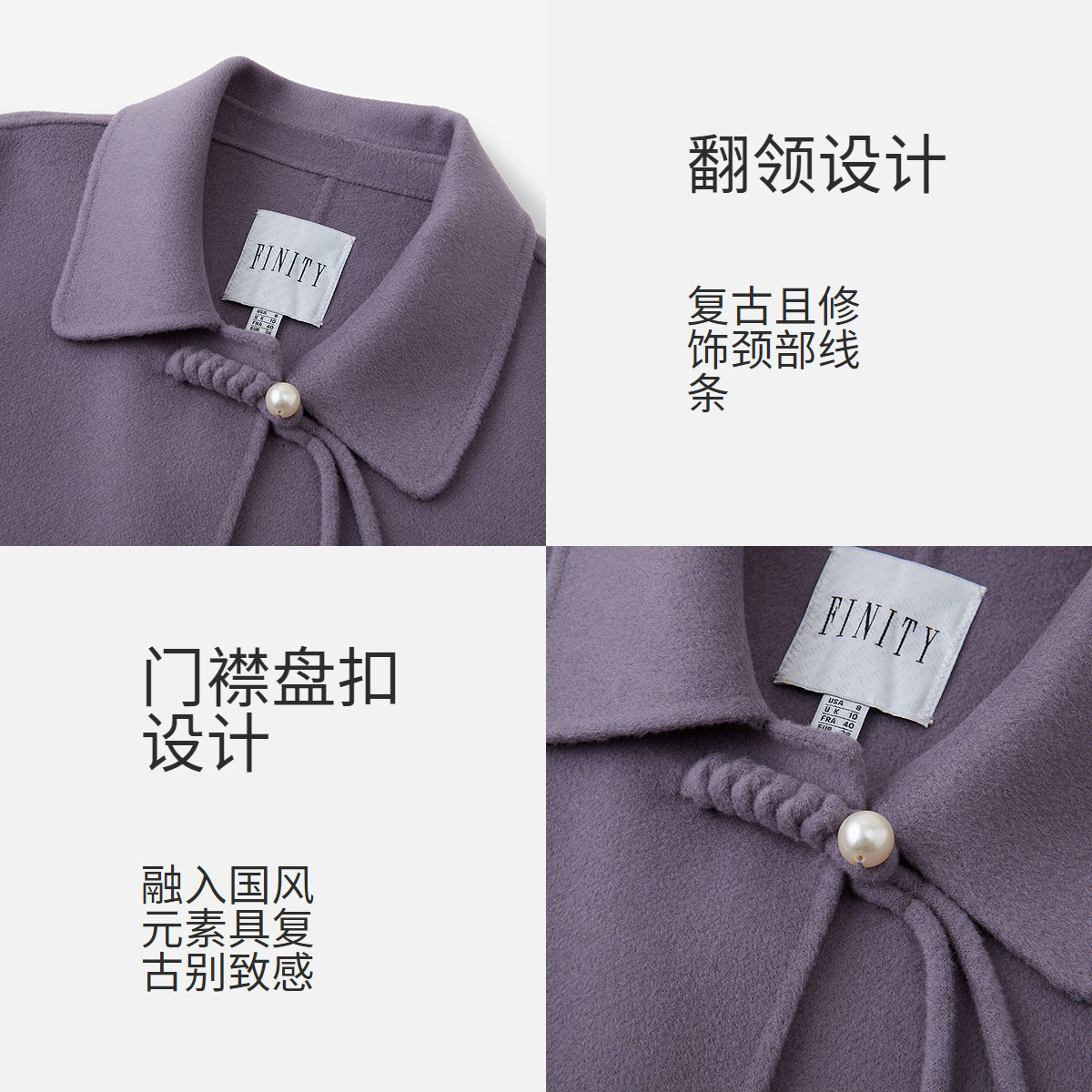FINITY菲妮迪毛呢外套2025冬季新款简约紫色双面呢长款羊绒大衣女