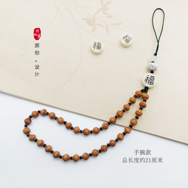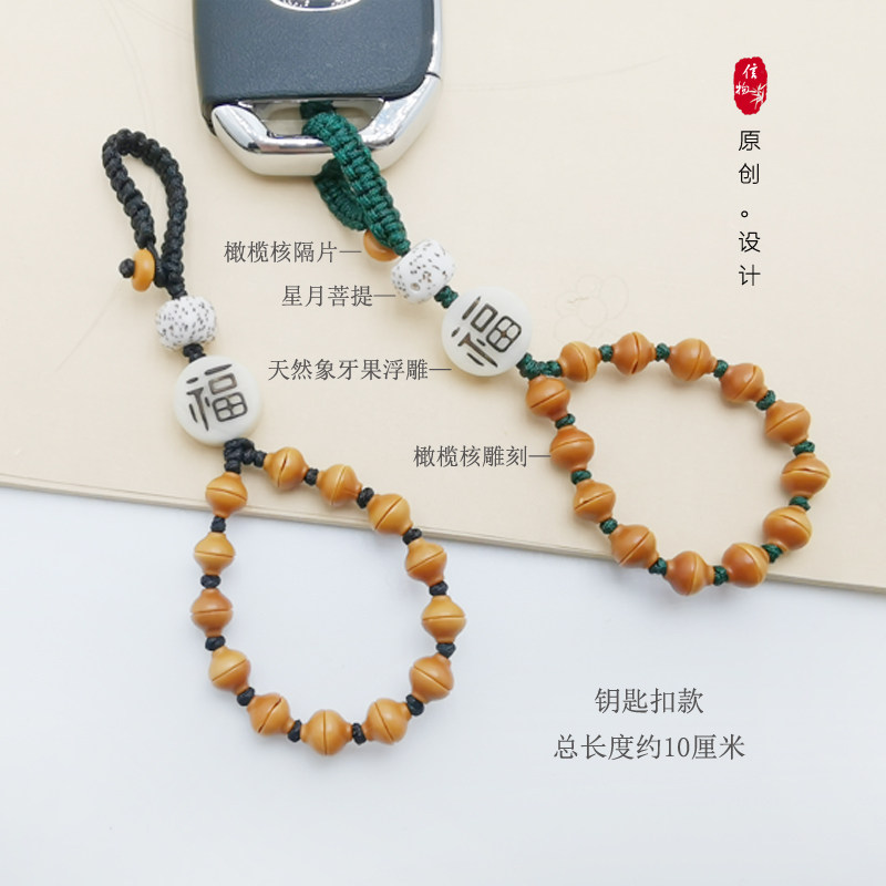 信物金饭碗橄榄核雕刻中国风手机链汽车钥匙扣男女简约大气包挂饰