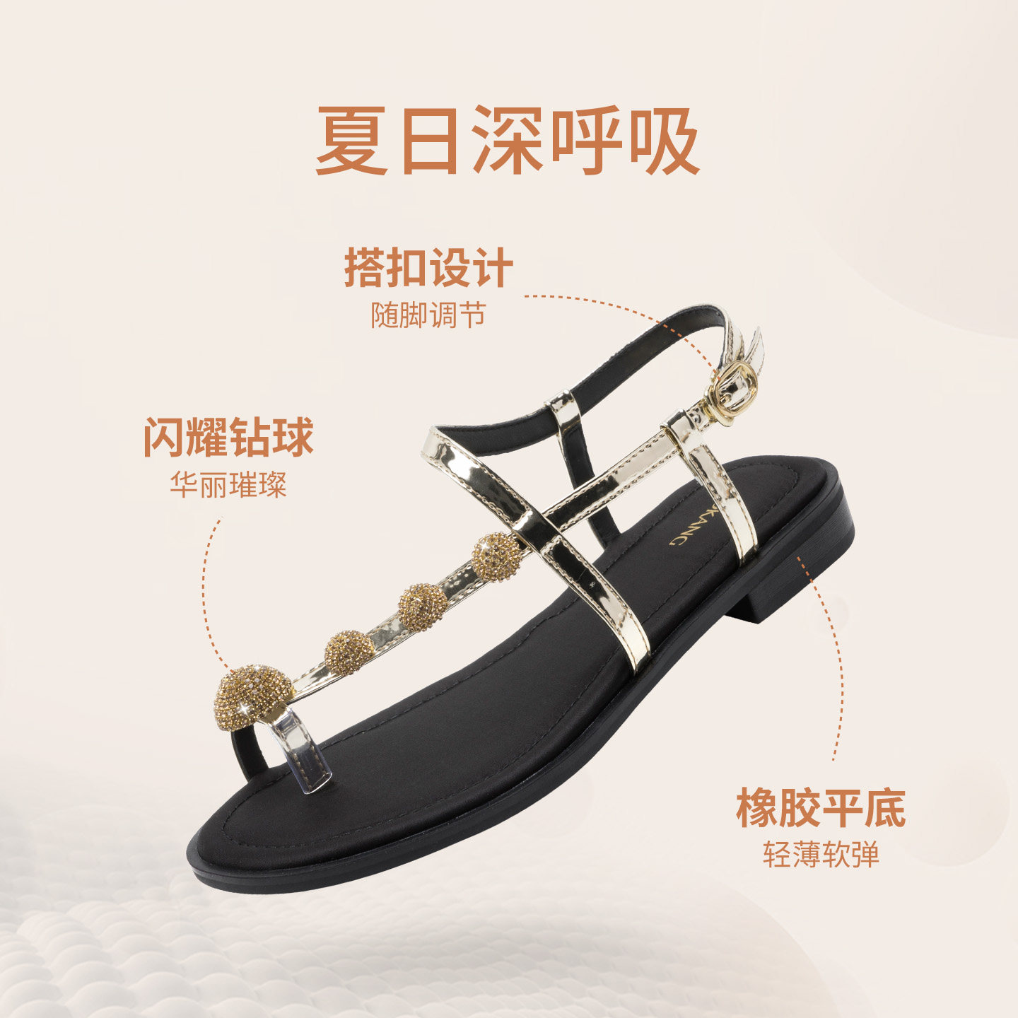 奥康 女鞋2026夏季新款时装凉鞋水钻装饰装饰夹趾法式门店发货