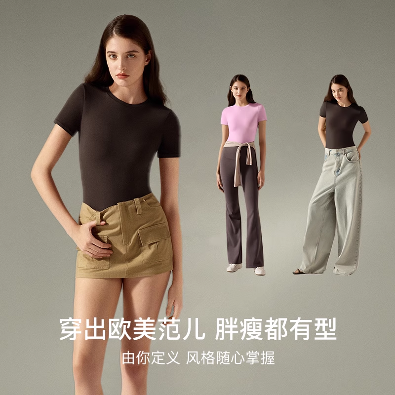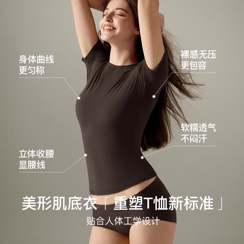 ubras美形裸感短袖内搭t恤女夏黑色打底衫高弹短款上衣2025新款