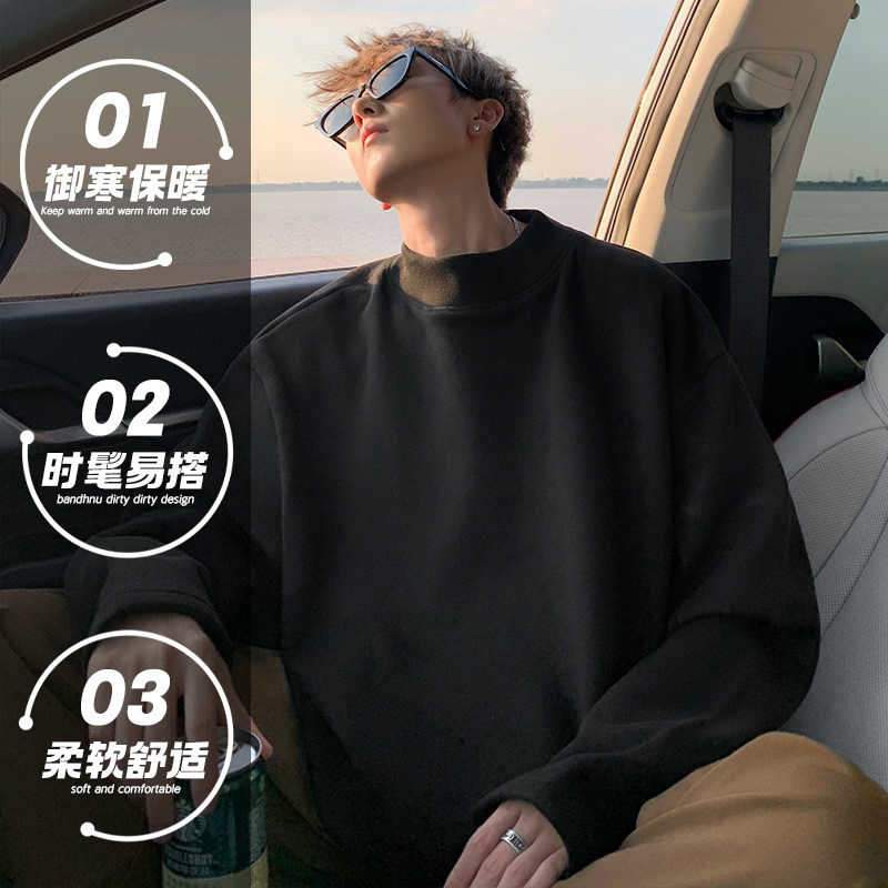 马登工装休闲半高领长袖打底衫纯色保暖内衣加厚抗静电内搭男款