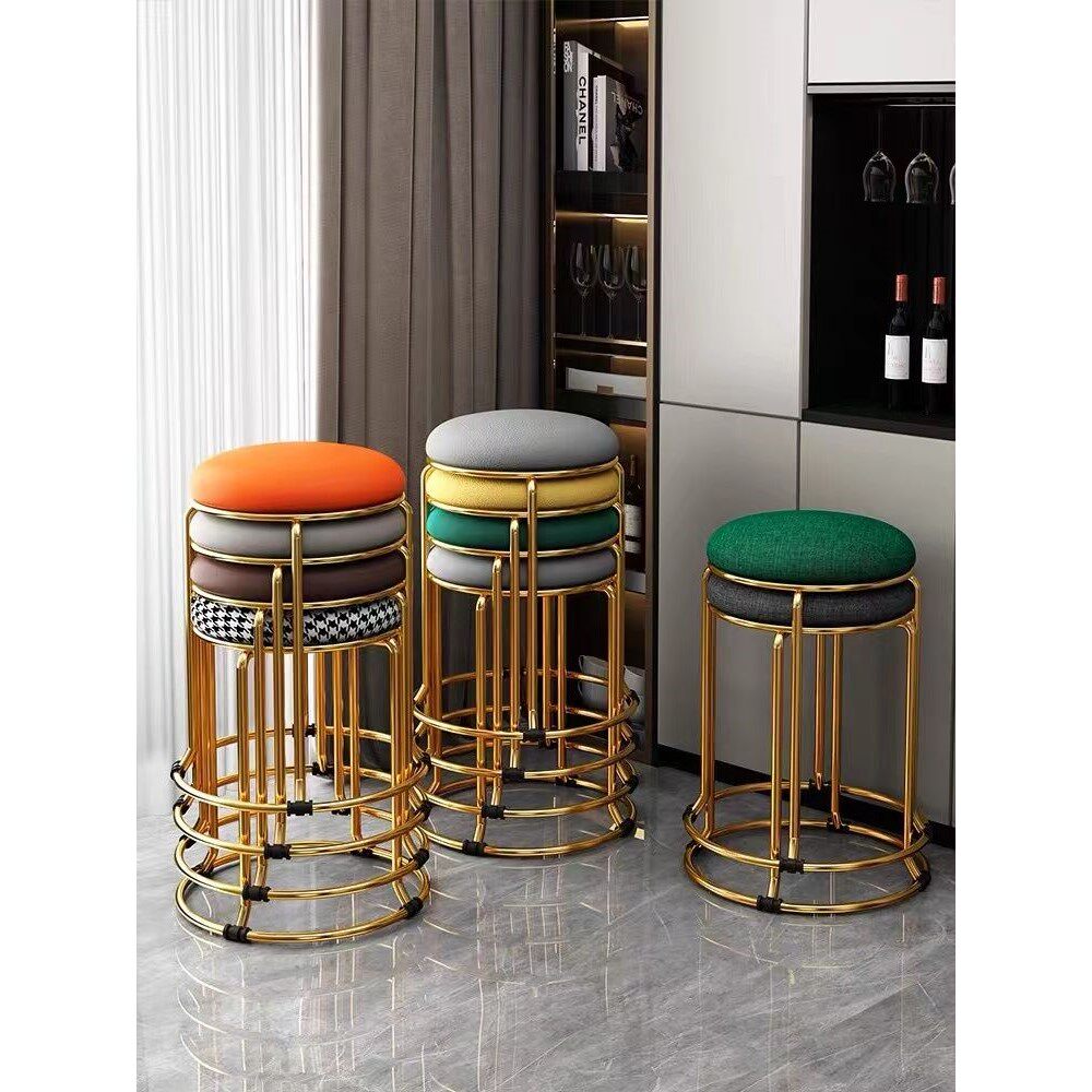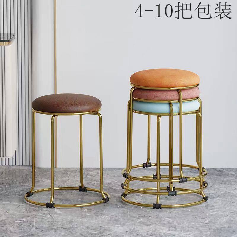 圆凳子家用现代简约高板凳可叠放餐椅轻奢高级感不锈钢餐桌小椅子