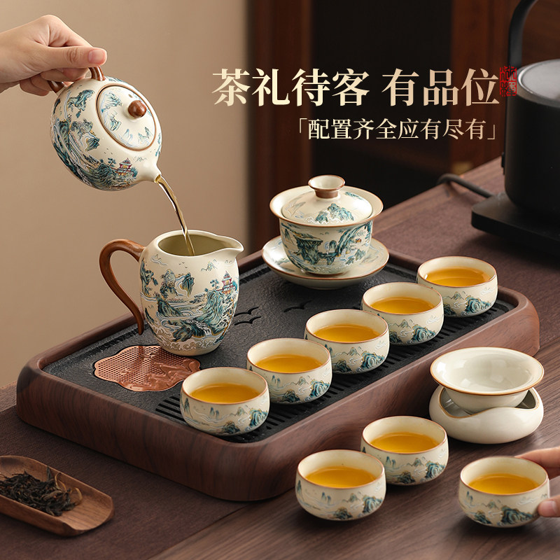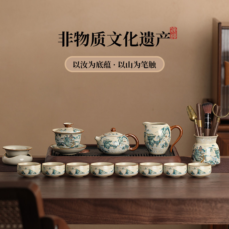 汝窑功夫茶具套装家用陶瓷泡茶壶茶杯干泡盘喝茶整套泡茶专用茶具