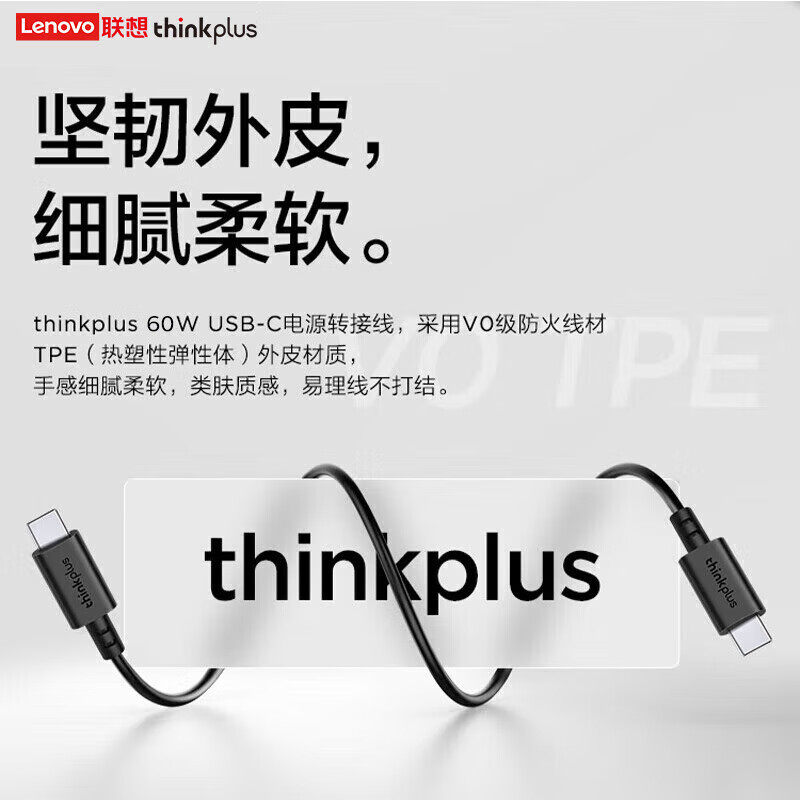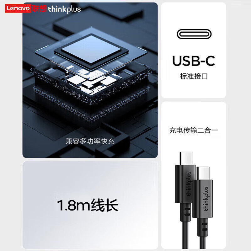 联想thinkplus口红电源转接线 type-c快充线充电60W数据线100W Type-C转Type-C电源线-1.8米/1米USB-C转USB-C