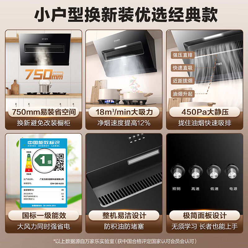 政府补贴万家乐抽吸油烟机TAJ4/AL031家用大吸力自清洗侧吸式AL5