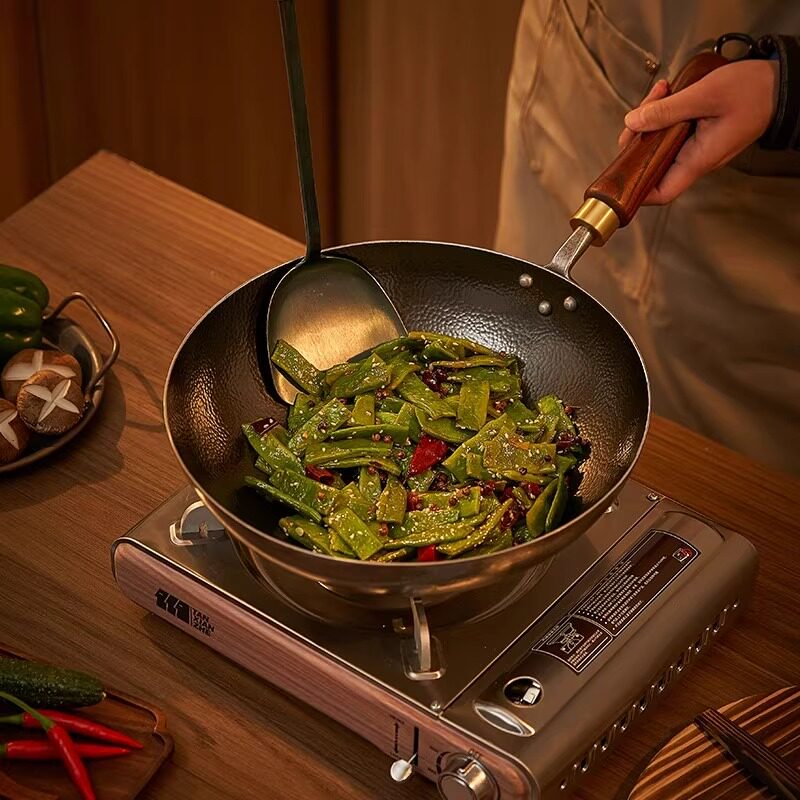 康巴赫尊享版真钛0涂层炒锅无涂层家用不粘锅燃气灶不锈钢炒菜锅