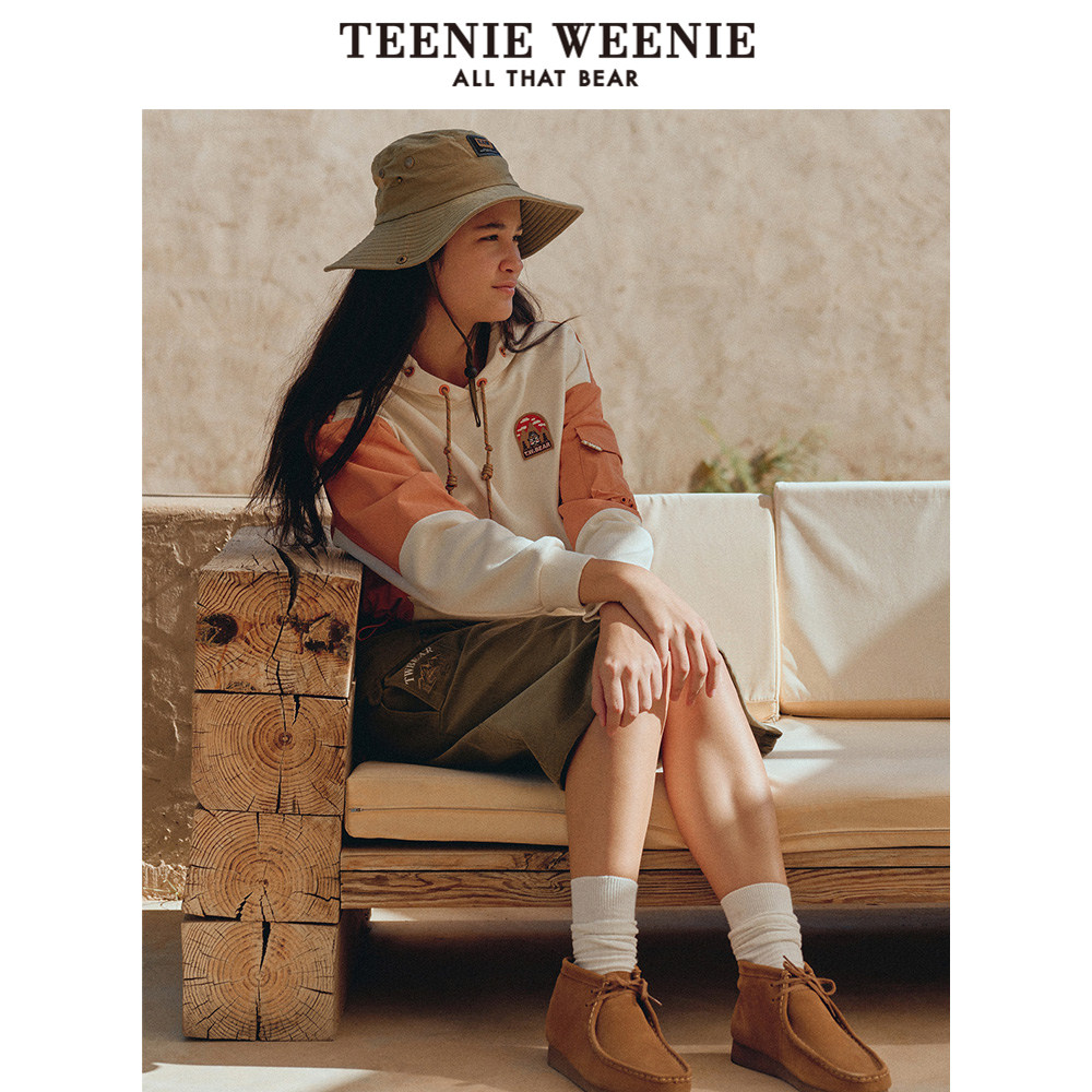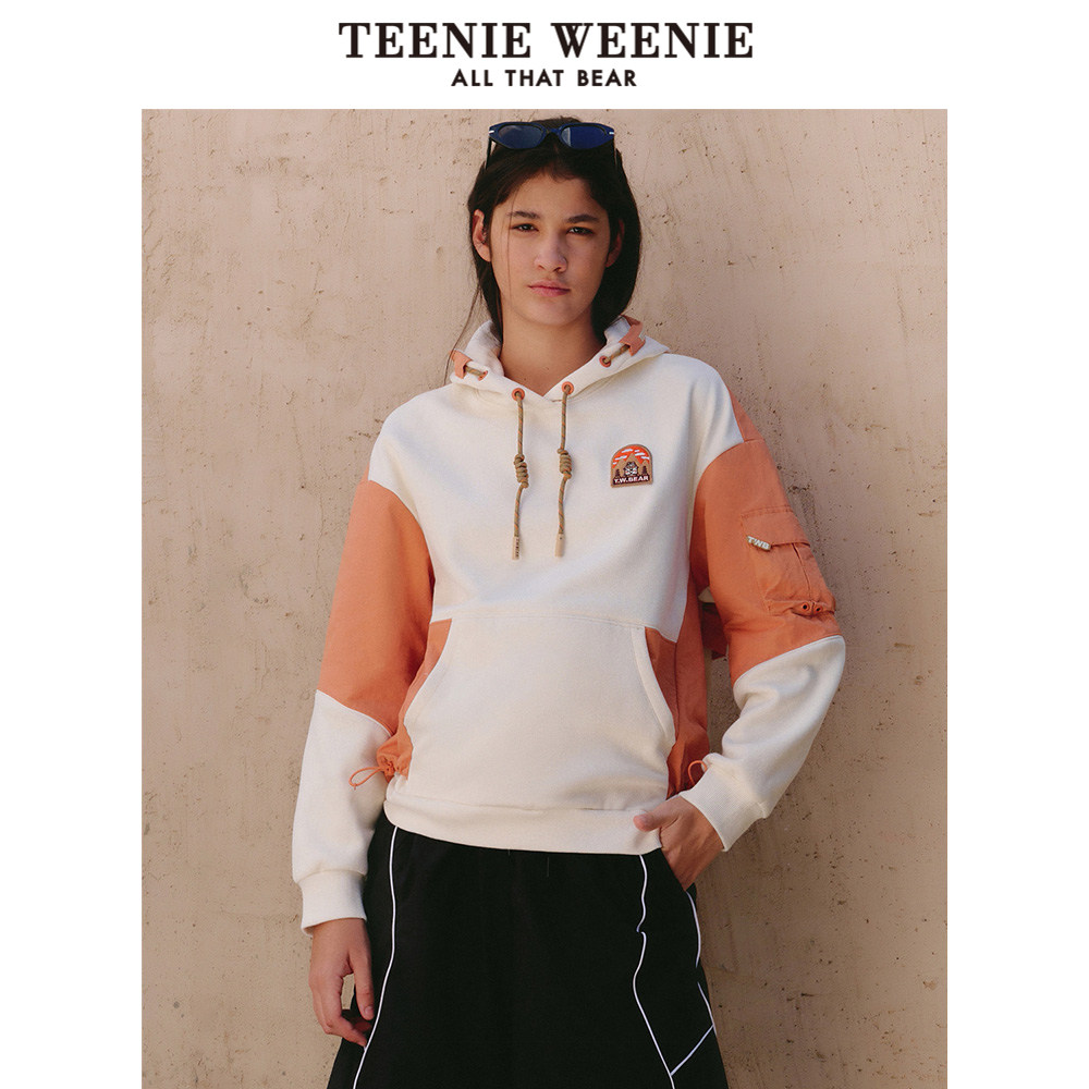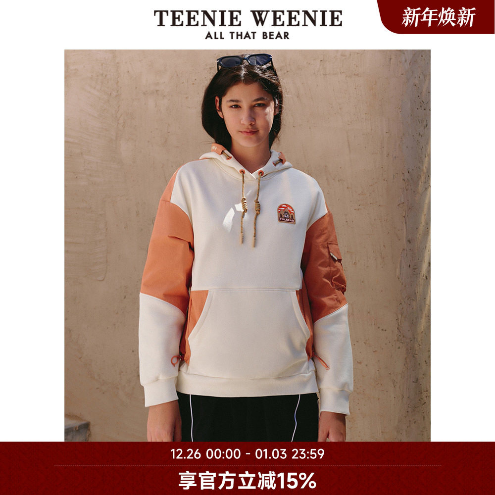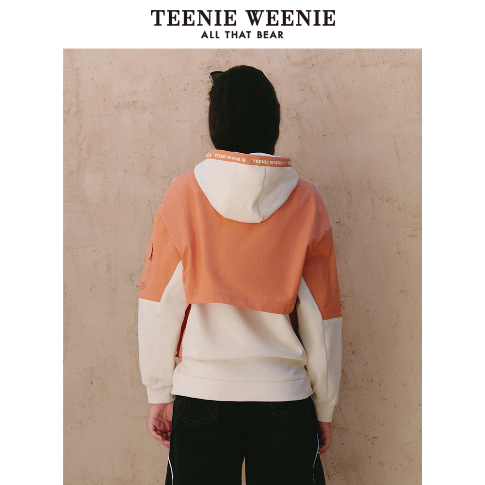 TeenieWeenie小熊奥莱春季季撞色连帽套头加绒加厚保暖卫衣宽松女