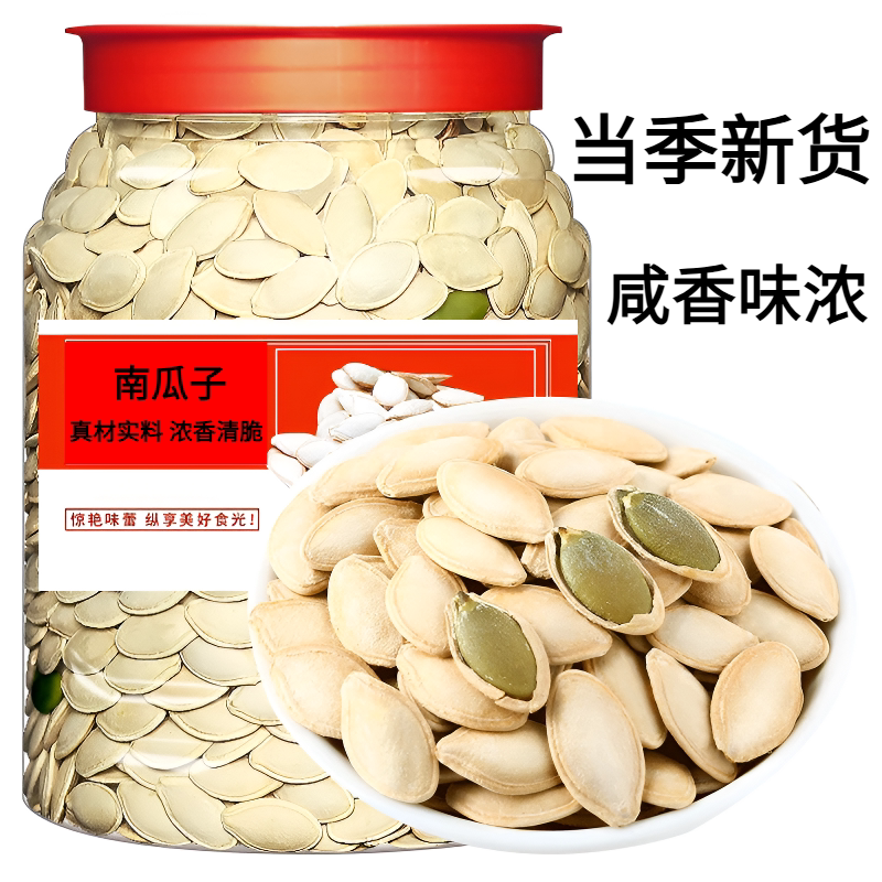 新货南瓜子原味500g罐装大颗粒干炒纸皮南瓜籽净重零食官方旗舰店