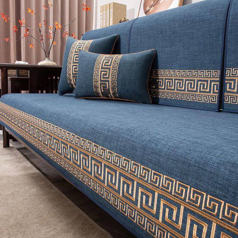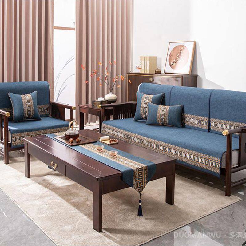 新中式沙发垫实木沙发坐垫四季通用亚麻防滑垫子红木套罩盖布新款