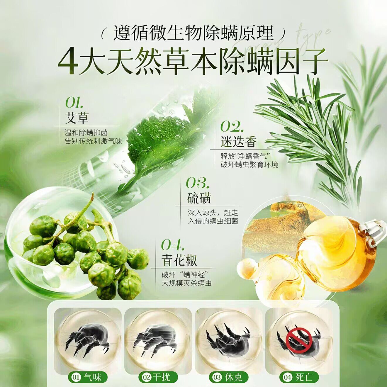 除螨喷雾香氛床上除螨杀菌专用学生宿舍去螨虫神器剂青花椒母婴用