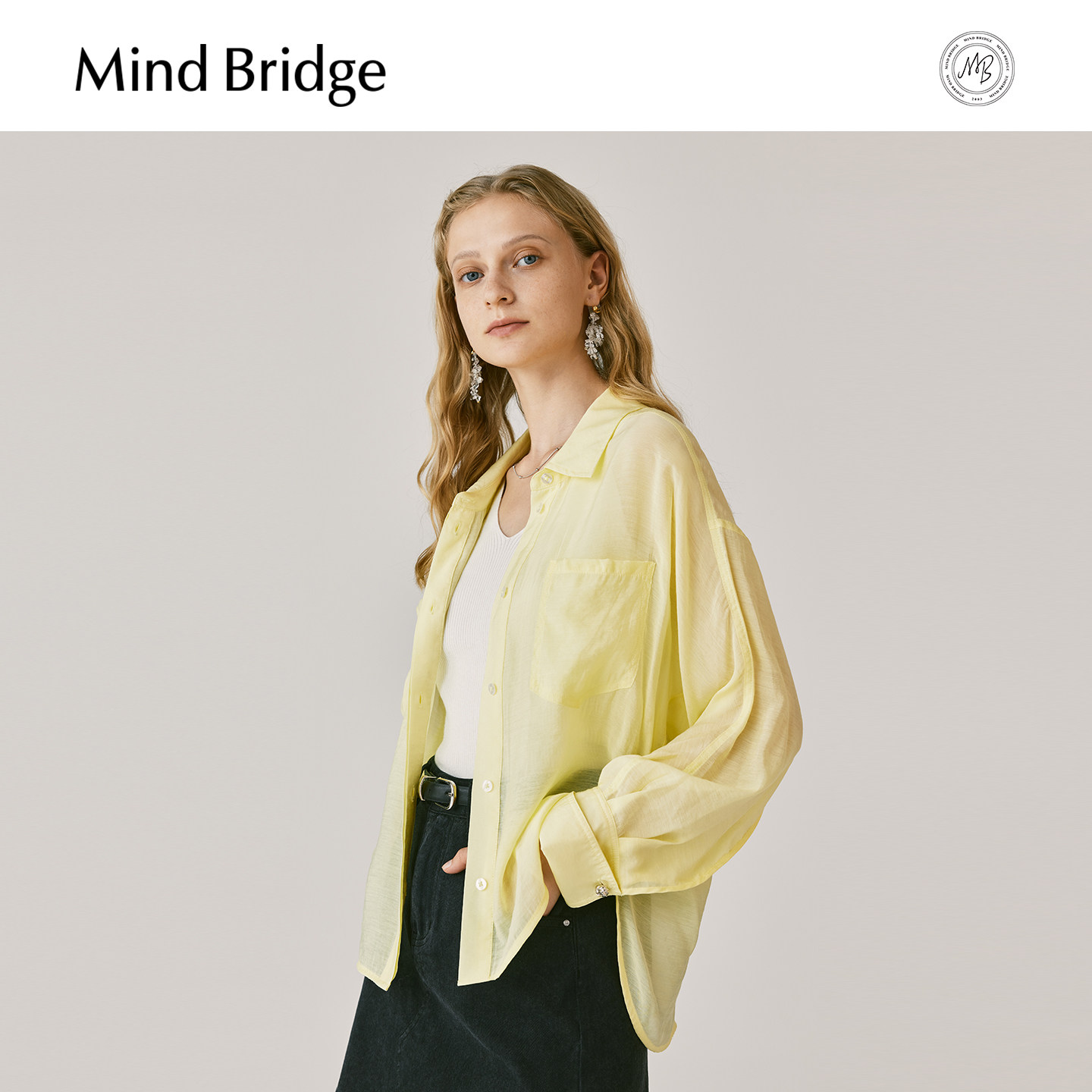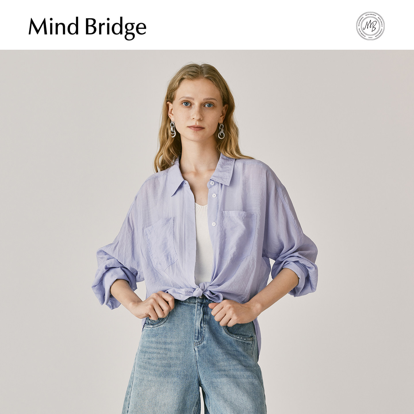 Mind Bridge女士宽松休闲衬衣2025夏薄款长袖衬衫慵懒风纯色外搭