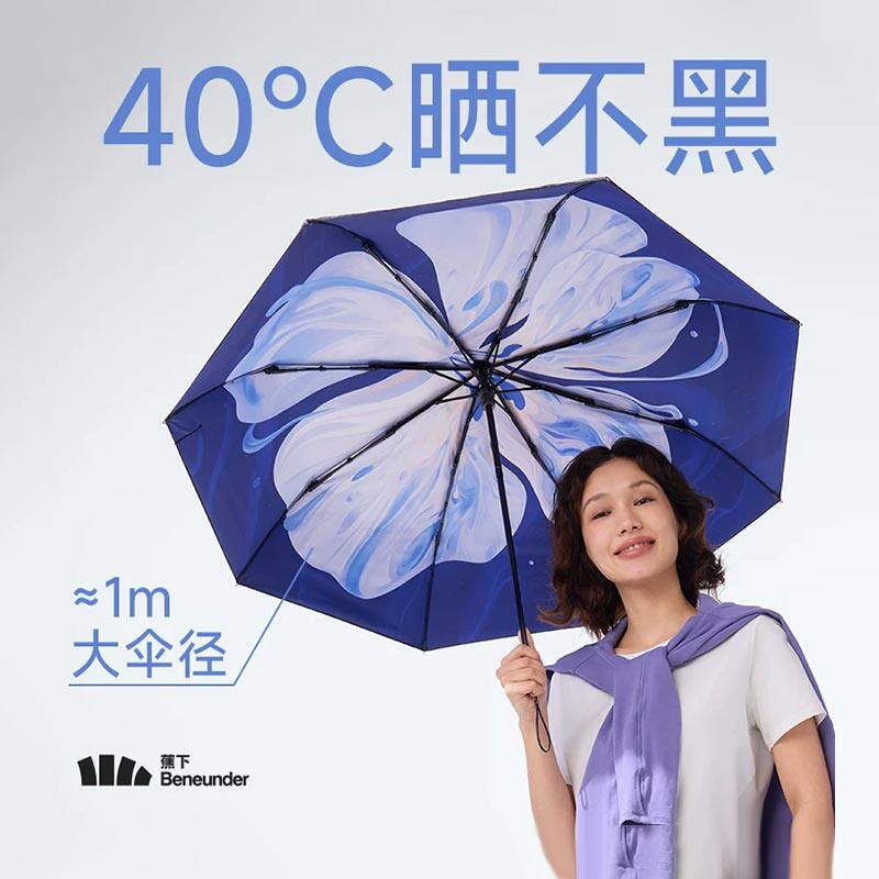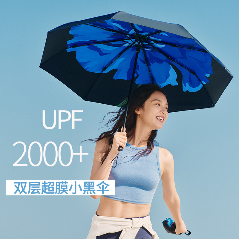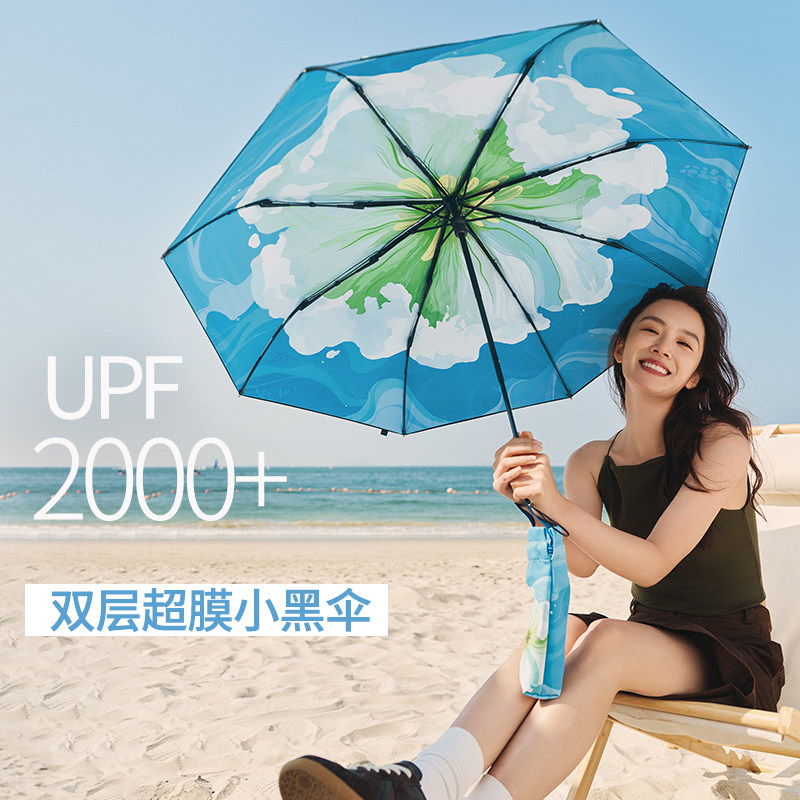 蕉下大花双层防晒伞黑胶大面积遮阳伞女便携装防紫外线三折太阳伞