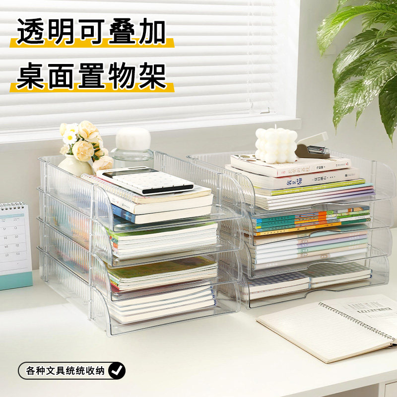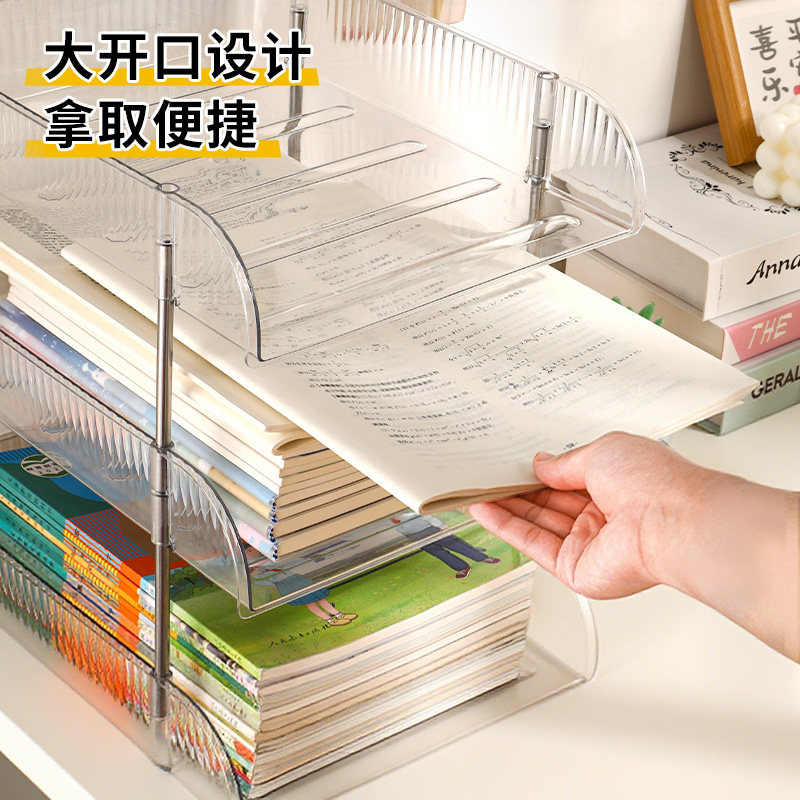 亚克力桌面多层置物架透明书本收纳架分层书架文具收纳盒分类办公室a4文件资料学生作业学习儿童书桌整理神器