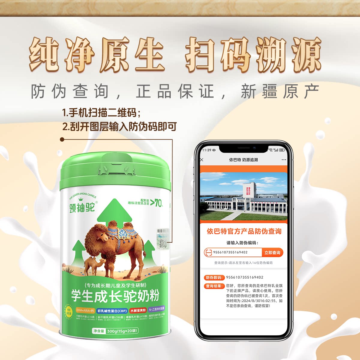 依巴特领袖驼学生成长驼奶粉新疆高钙儿童驼奶粉青少年新疆驼奶