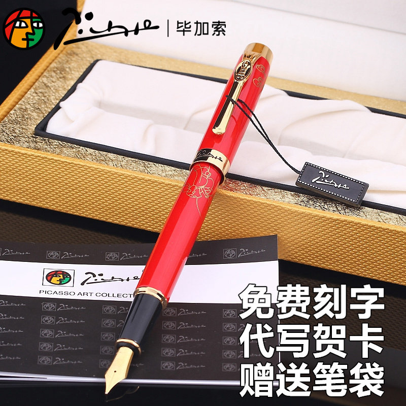 正品pimio毕加索铱金钢笔933纯黑/金色/红色礼盒装男女士商务礼品墨水笔公司企业礼品笔生日送礼物定制刻字