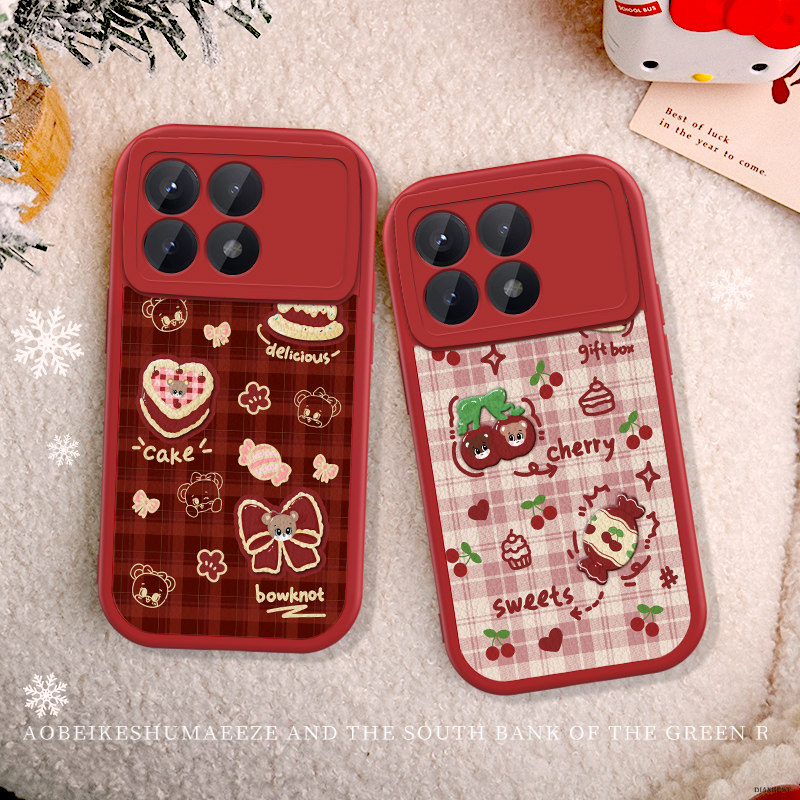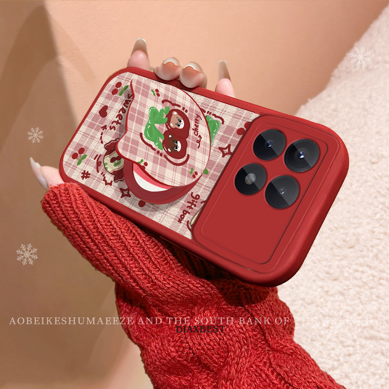 镜子支架适用于红米K70手机壳防摔软壳60Pro全包边K50轻奢小羊皮40S复古格纹K30日韩蛋糕小熊70Pro新款可爱女
