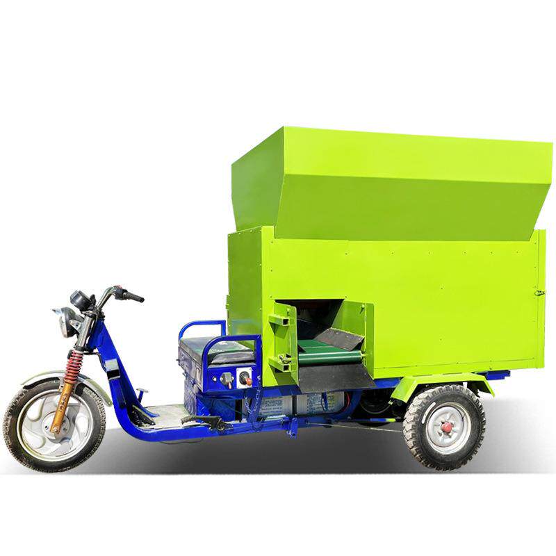 畜牧养殖场电动三轮撒料车柴油动力四轮轻卡喂牛车干湿两用送料车