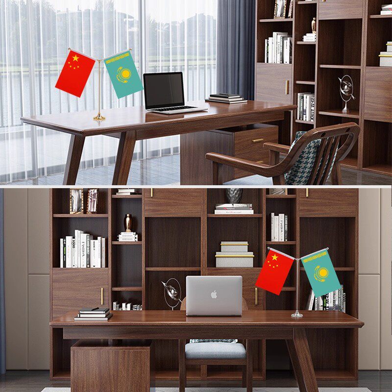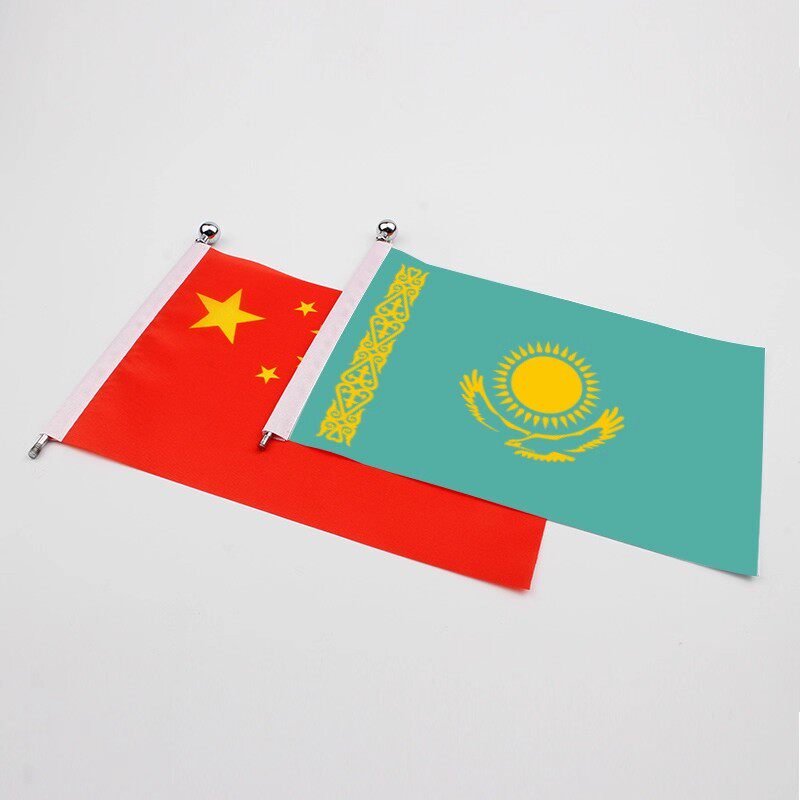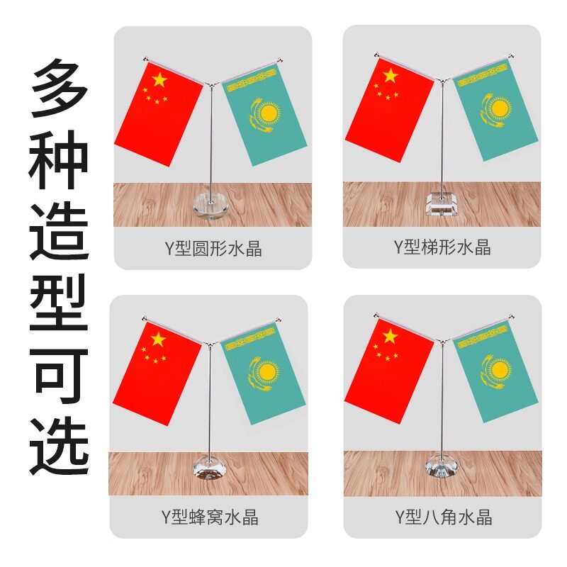 中国哈萨克斯坦桌旗国旗摆件谈判Y型签约红台旗装饰办公室面贡缎