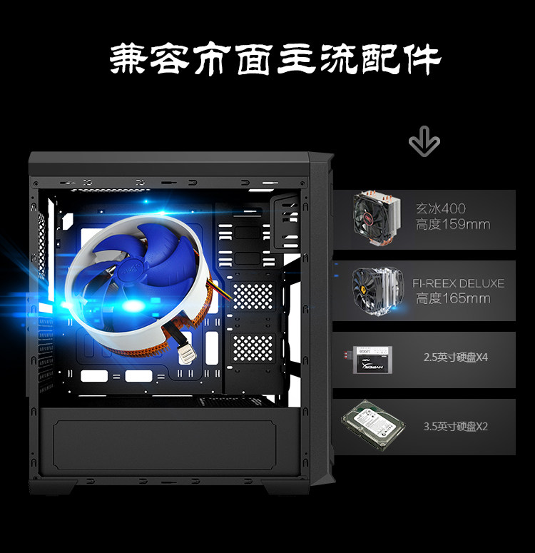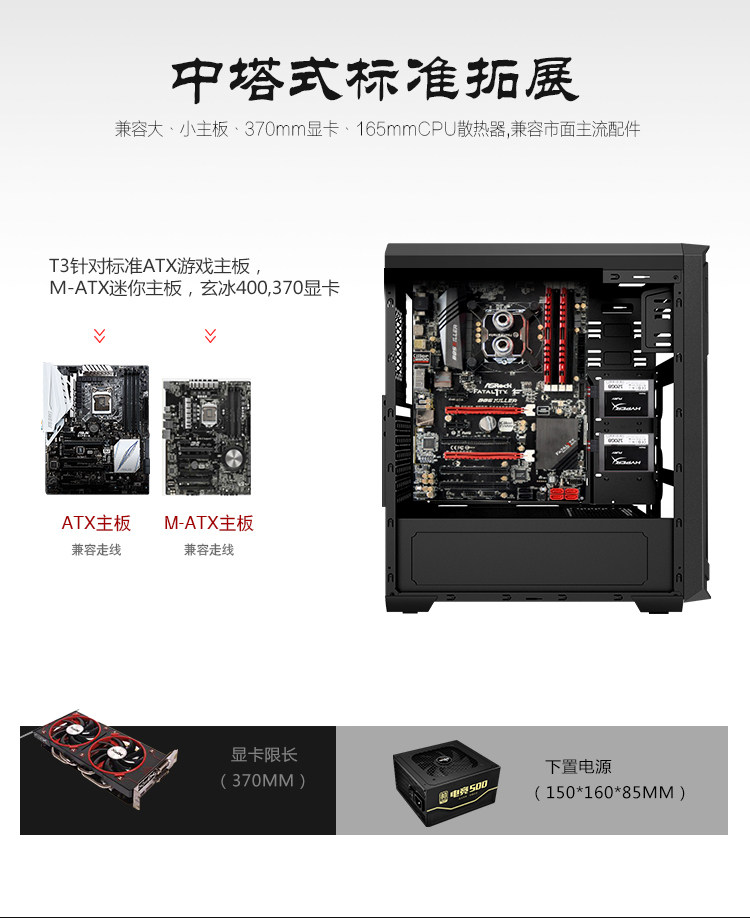 爱国者T3电脑主机箱支持ATX大板大侧透电源下置水冷背线游戏机箱