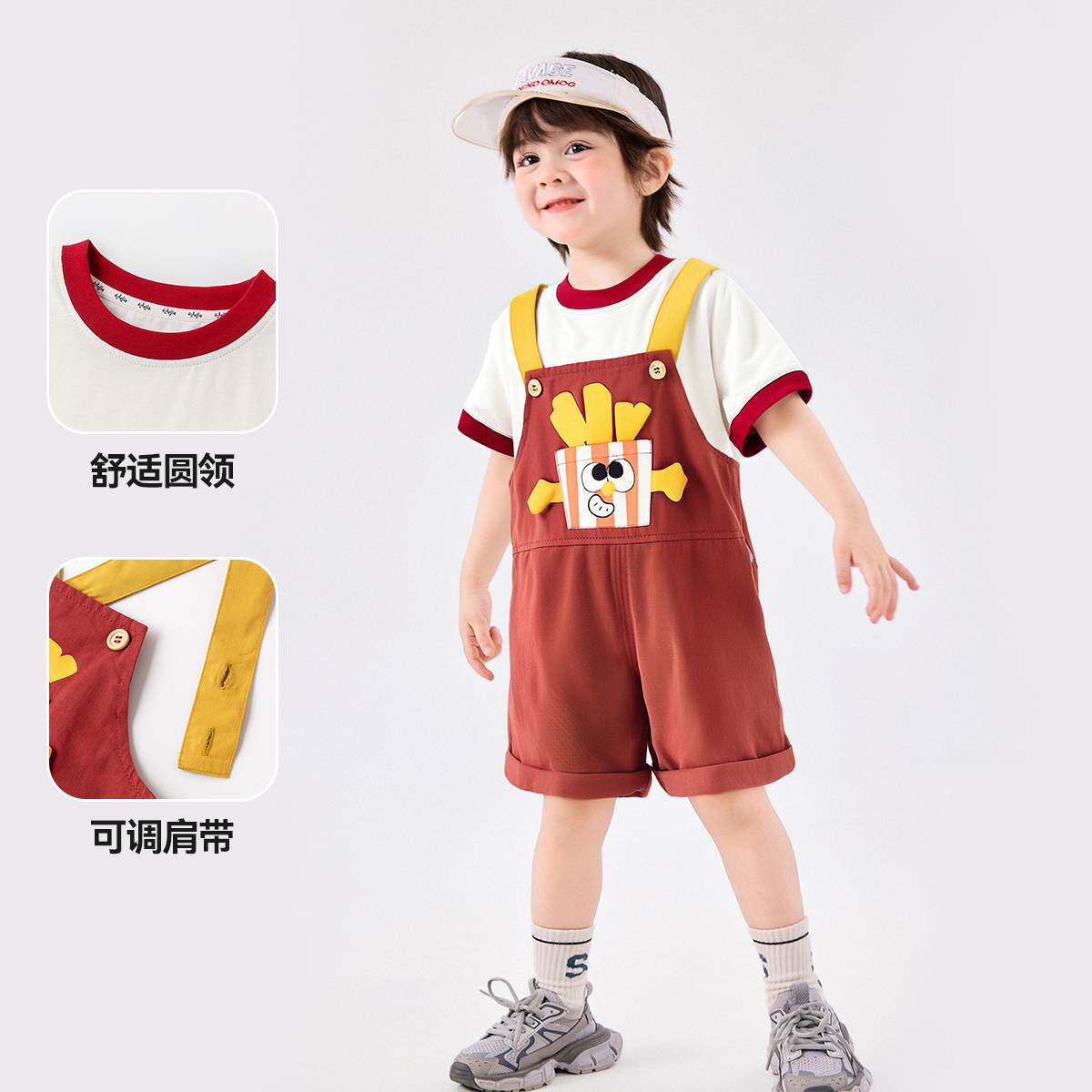 嘟嘟家宝宝背带裤套装夏装儿童休闲宽松两件套夏款男童短袖短裤夏