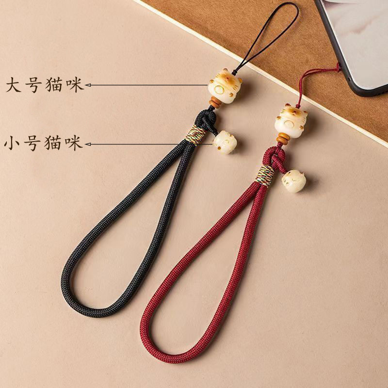 可爱菩提招财猫手机挂绳手机链手腕绳吊坠挂件精致U盘挂饰手工编织手机壳挂绳相机绳子钥匙扣小挂件