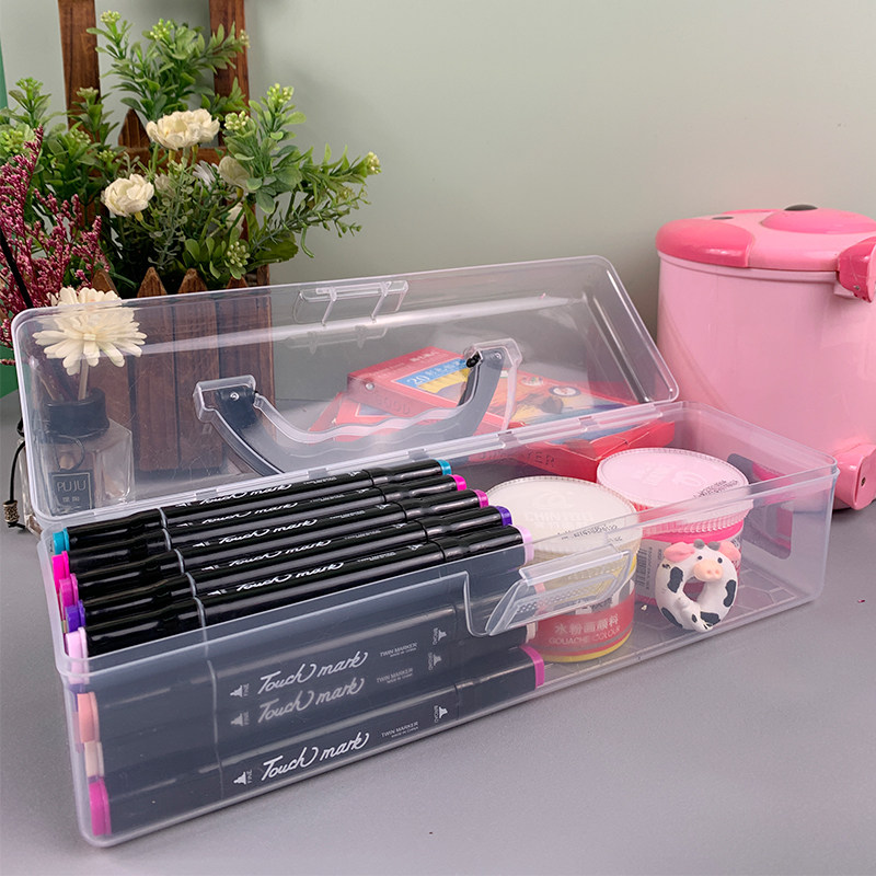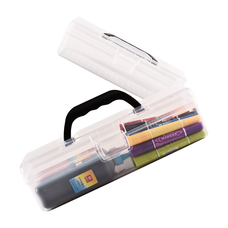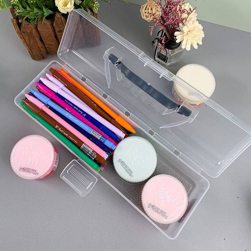 长方形书法画具收纳盒透明塑料盒子水粉笔盒钓鱼专用工具箱加长加宽加厚画笔毛笔油画丙烯便携手提式储物盒