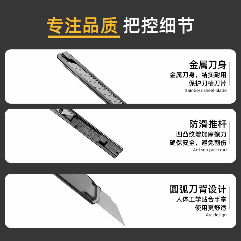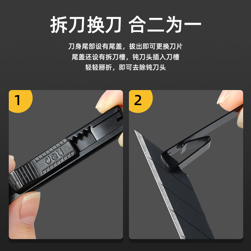 得力美工刀小号开箱刀工具刀30度刀尖美术生雕刻刀工业级黑刃钨钢小型切割物品裁纸刀拆快递办公家用实用刀具