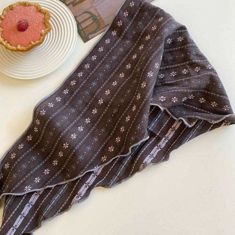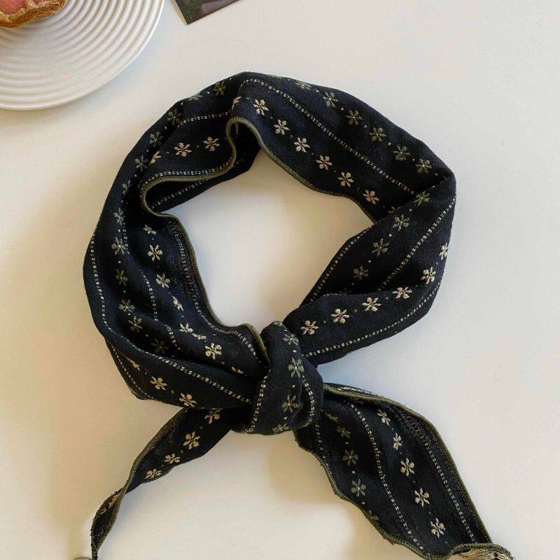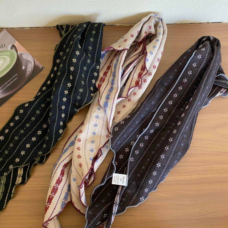 新款丝巾百搭春秋护颈头巾装饰领巾时尚复古小围巾三角巾条纹项链