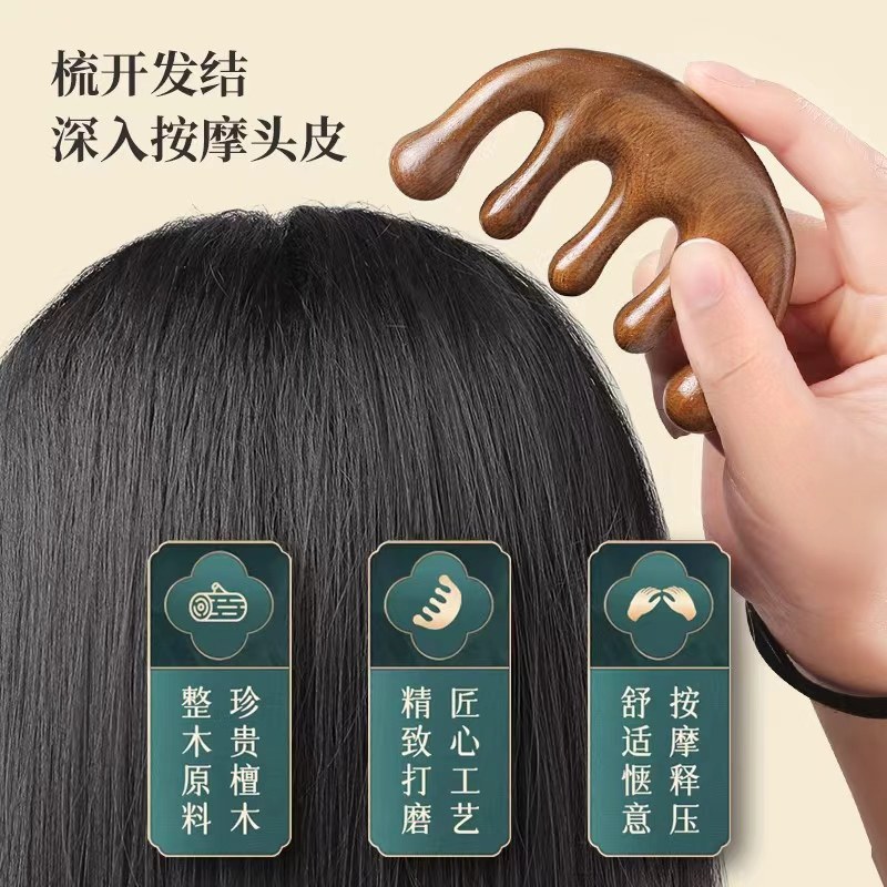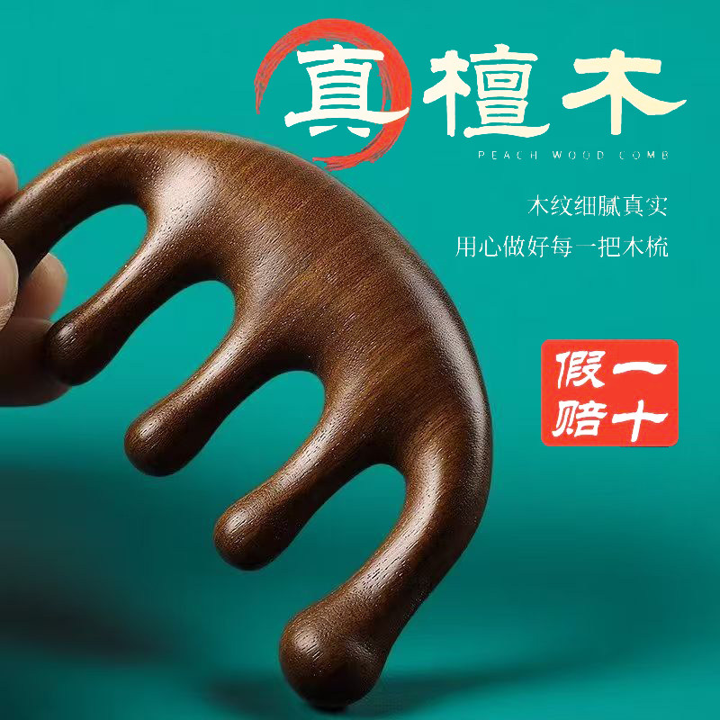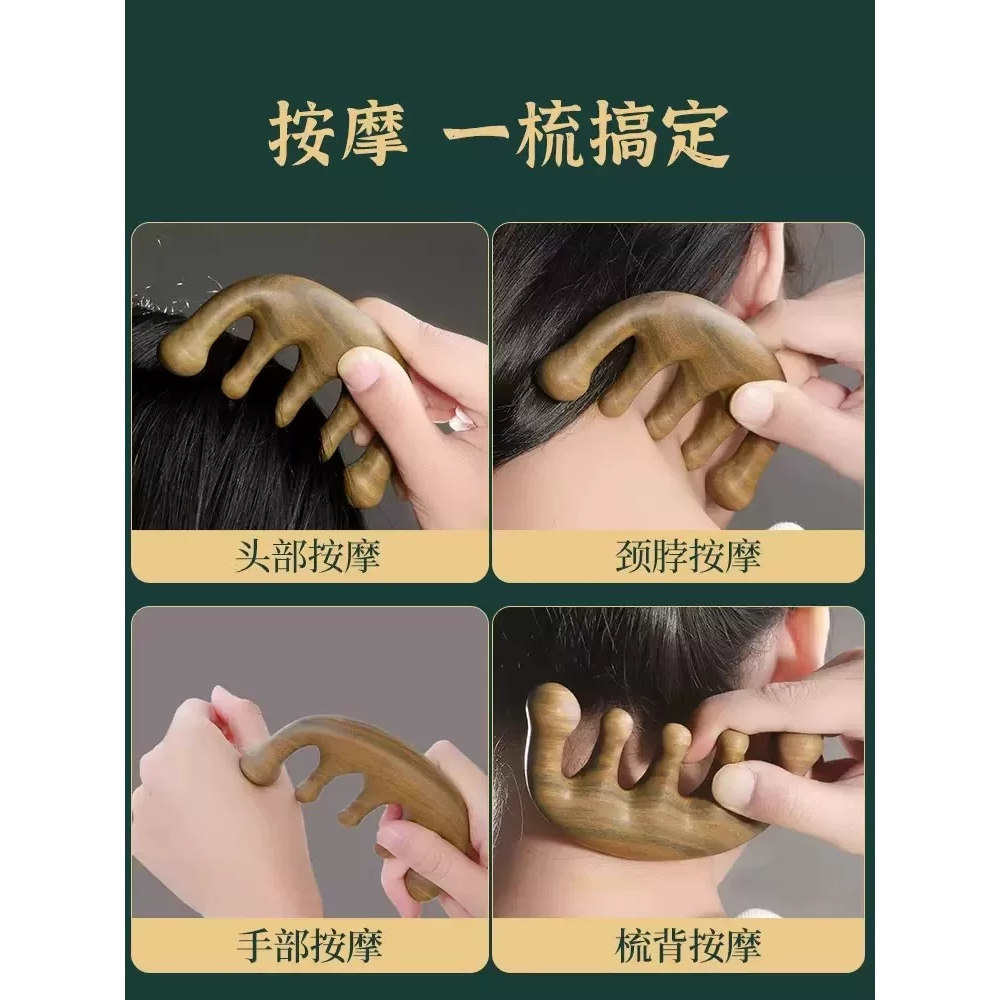 按摩梳檀木梳子头部经络头皮面部疏通神器刮痧头疗养发防绿檀羊角